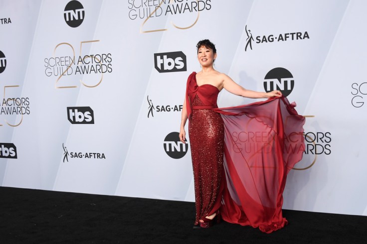 Sandra Oh 在演員工會獎的紅毯,是穿了 Jenny Packham 的禮服,這件2018秋冬的禮服紅色款真好看!正式、成熟、性感、女人味都有,這個瀏海…