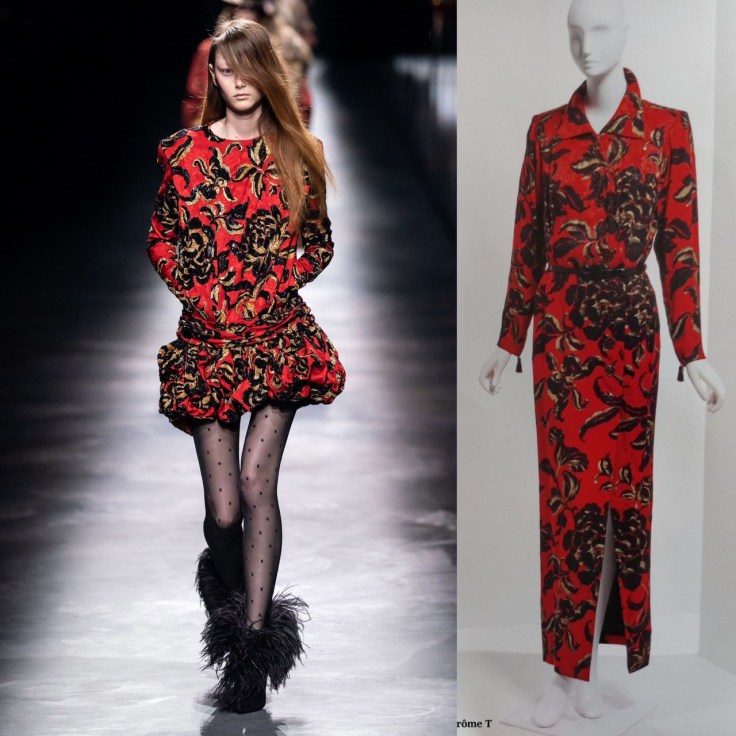 本季 Saint Laurent真的是賞心悅目,把經典YSL的細節還有線條,用 Anthony Vaccarello 的表現手法呈現摩登的一面,先找幾件讓大家看看印花、還有金色紋路以及線條,太美了!