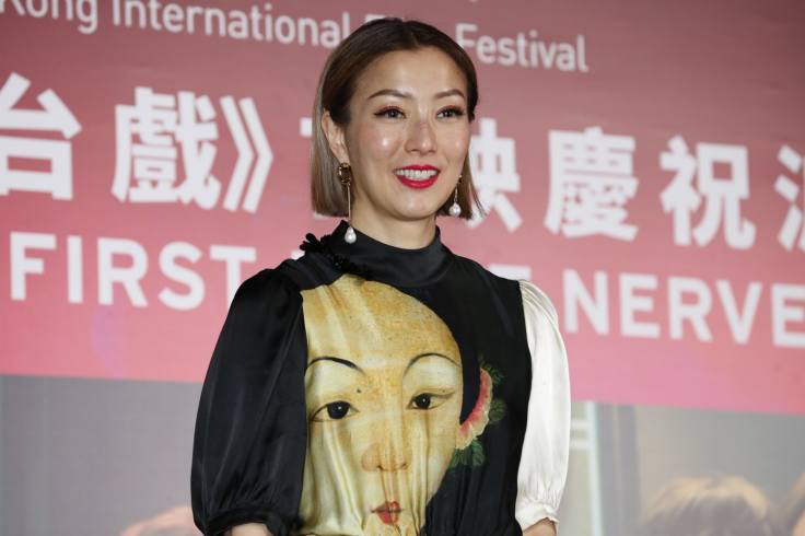 鄭秀文出席「八個女人一台戲」在香港國際電影節的首映時,穿了 Simone Rocha 2019春夏的洋裝;選這件真的厲害,看看洋裝上的古典美人印花,和背板上的劇照有呼應,典雅迷人,很好看。
