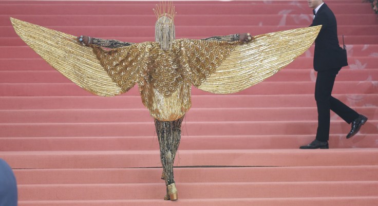 今年李宇春依然是由 Gucci參加Met Gala,身上這件兩隻鳳凰面面相覷的禮服和剛剛Saoirse Ronan那件雙龍款可以配成一對耶;這件感覺起來就沒有那麼戲劇化,少了一點發光的感覺。