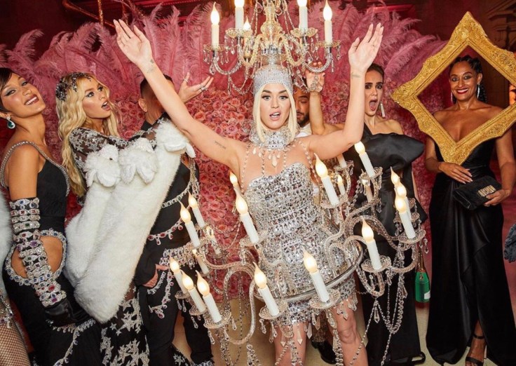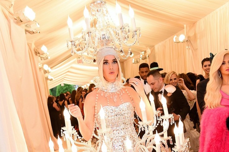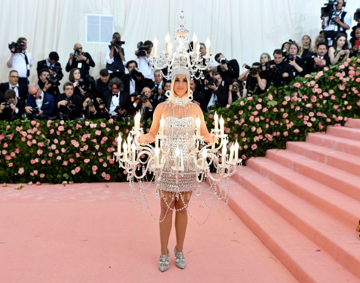 今天女生組中最認真的人選一定有 Katy Perry啦!吊燈和大麥克裝都來自 Moschino 的訂製,真的瓦數很亮耶(笑)。