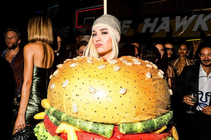 Katy Perry在場內,從原來的大愛吊燈裝,變成漢堡人了啦,我要笑死,漢堡神偷原來是她!!!!