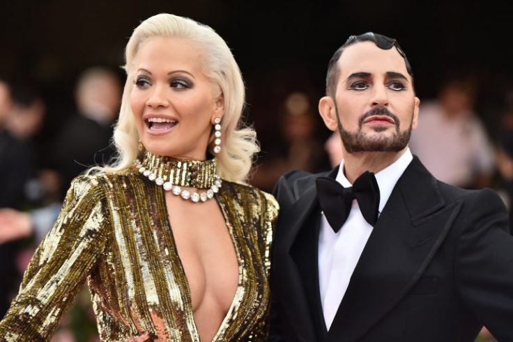 Marc Jacobs應該很喜歡這個主題,看他妝化得多濃(笑),指甲油還有厚底鞋都穿上了,妖豔呢!站在他身邊,穿著他設計的金色低胸禮服的 Rita Ora 好像都被蓋過去了呢~~~