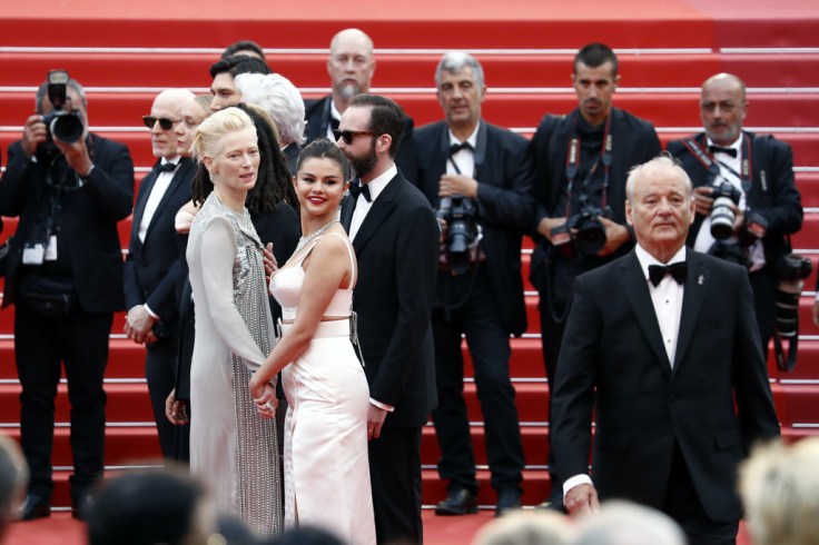Selena Gomez在坎城開幕紅毯上的禮服來自 Louis Vuitton的訂製款,這一件還蠻大班的,高衩裙子也有一點涼被感(掩面