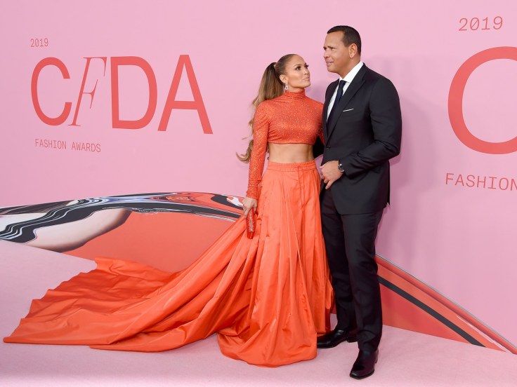 J. Lo 出席 2019CFDA時尚大獎的橘色兩截式禮服來自 Ralph Lauren的特別訂製,一開始還以為是Brandon Maxwell…看看這川字線,馬上把零食放下…