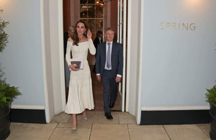 凱特王妃 Kate Middleton出席Action on Addiction慈善晚宴時,穿了 Barbara Casasola 2016春夏的白色平口洋裝。