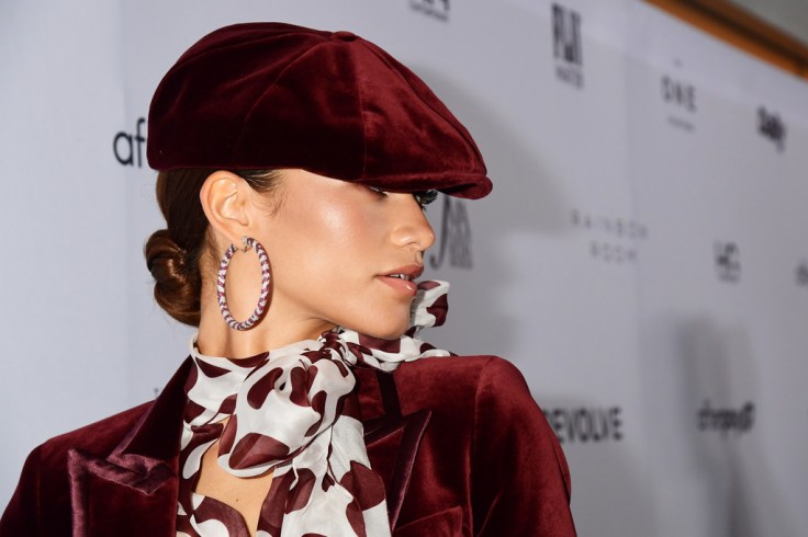 Zendaya出席第七屆Daily Front Row Fashion Media Awards時,穿了她和 Tommy Hilfiger聯名的勃根地紅絲絨西裝。