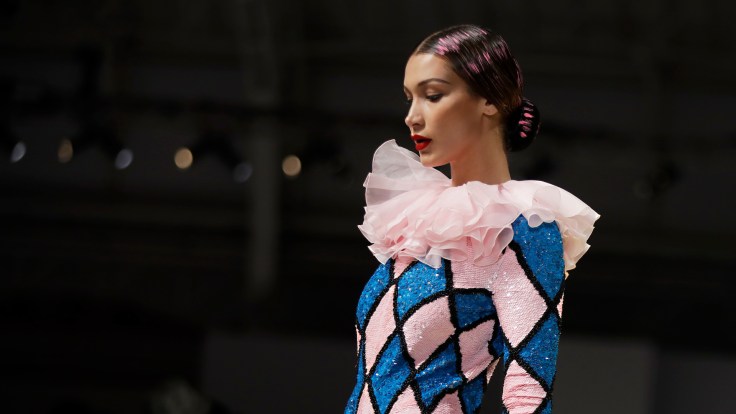 Bella Hadid身上這套應該是取自畢卡索1901年的作品「Harlequin Pensativo」再加上另一幅作品中的小提琴融合而來。