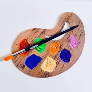 宛如畫家的調色盤,還附上一支畫筆,告訴我們這一場秀要傳遞的是藝術。到秀場之後,可以看到其實沒有太誇張的舞台設計,僅有在出場與中場的地方放置了幾個巨大畫框。