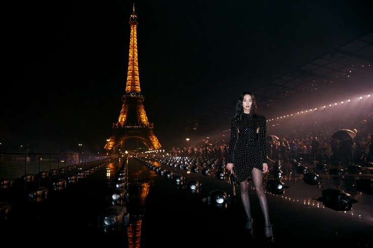 張鈞甯出席 Saint Laurent 2020春夏大秀時,選穿了2019秋冬的洋裝。