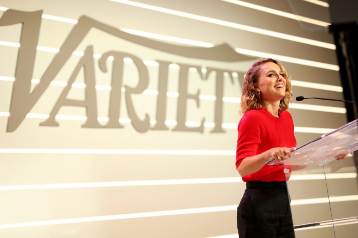 Variety 舉辦的「Power of Women」活動中,由女雷神頒獎給驚奇隊長,兩位剛好都是紅黑配,Natalie Portman的褲子來自Givenchy,Brie Larson則是穿了 Rosetta Getty 2020早春的褲裝。