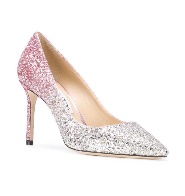 在影片中能看到姊姊穿了 Jimmy Choo 另一雙美鞋,銀色和粉紅色的漸層,就是愛情的粉紅光芒!