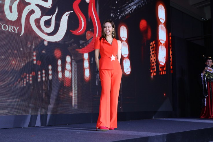Jolin 蔡依林出席《倩女幽魂II》上市記者會時,穿了 Elisabetta Franchi 不對稱剪裁紅色連身褲亮相! 不知道穿一身紅衣在倩女幽魂世界裡面會是什麼等級的~~~會不會比黑山老妖還厲害呢!?