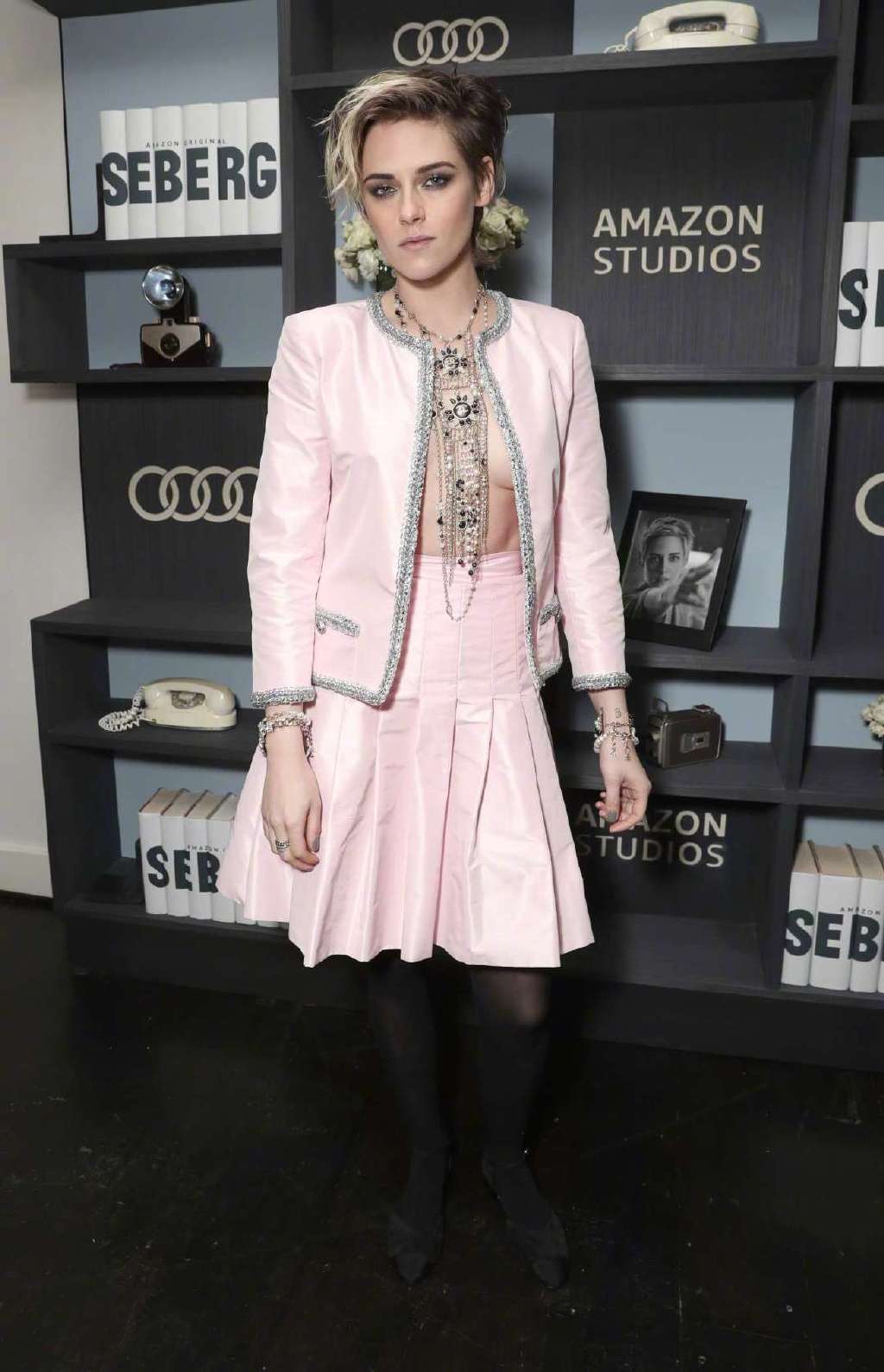 Kristen Stewart出席電影「Seberg」首映時,穿了 CHANEL 2020春夏的裙裝亮相;她穿小香已經是理所當然,但她今天選擇以完全不穿上衣的方式搭配項鍊來詮釋這套就厲害了!