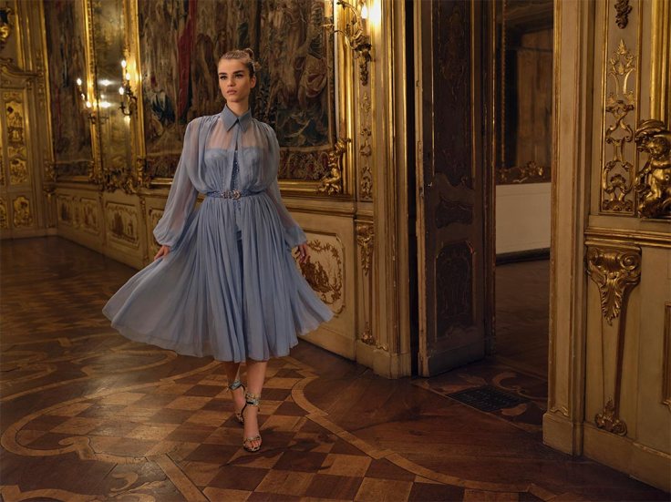 Atelier Versace 2020春夏高級訂製服依然是華麗的主調,加上品牌的經典印花,在剛柔之間,性感與優雅抓一個平衡;喜歡 Natasha Poly 身上這件天藍色的斜肩禮服,在女神感的基礎上加上綿密漸層水晶的馬甲,再加上超高衩,這件在奧斯卡紅毯上一定相當亮眼(自以為這件已經被選上