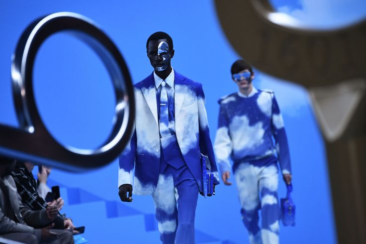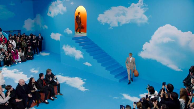 再來在襯衫上以雷射切割做出LV老花的鏤空效果,狀似放大的蕾絲般,延續下去在襯衫與袖口處拼滿荷葉邊,有股浪漫的王子感。壓軸的白雲系列,則是引起在場所有人競相拍攝,實在太搶鏡!誠如布布前面所說,這片天空乘載的隱喻太多,化成服裝時,只要一個單品就是最亮眼的主角。