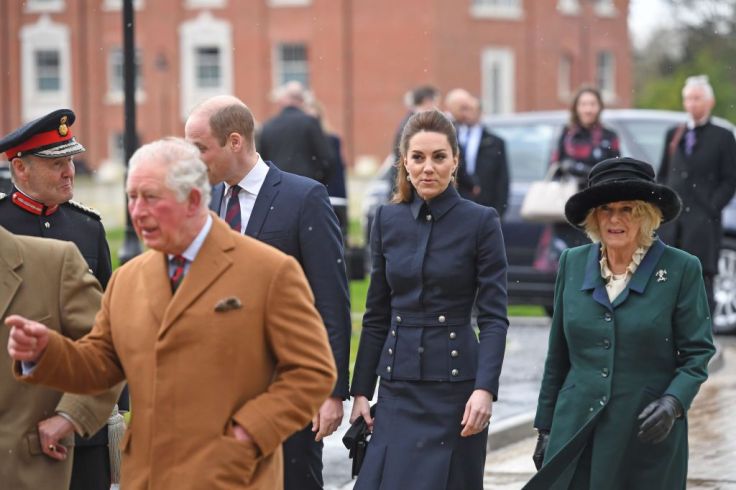 凱特王妃和威廉王子一同訪問國防醫療康復中心時,穿了帶點軍裝風格的 Alexander McQueen 夾克與裙子,搭配黑色的長靴與手拿包,有英氣的優雅美❤️