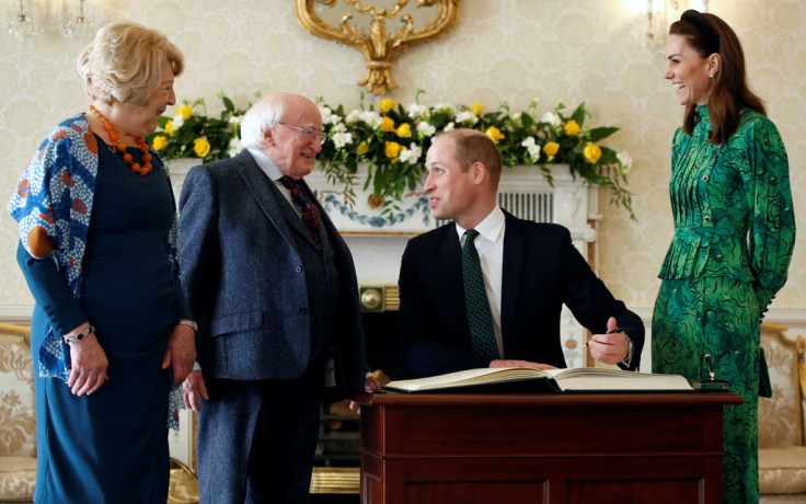 凱特王妃和威廉王子一起出訪愛爾蘭,王妃今天選穿 Alessandra Rich 2020春夏的綠色印花洋裝;我喜歡這個不那麼誇張的羊腿袖設計,有氣勢但不銳利,同色系不同濃度的手拿包與高跟鞋完整了整個look❤️