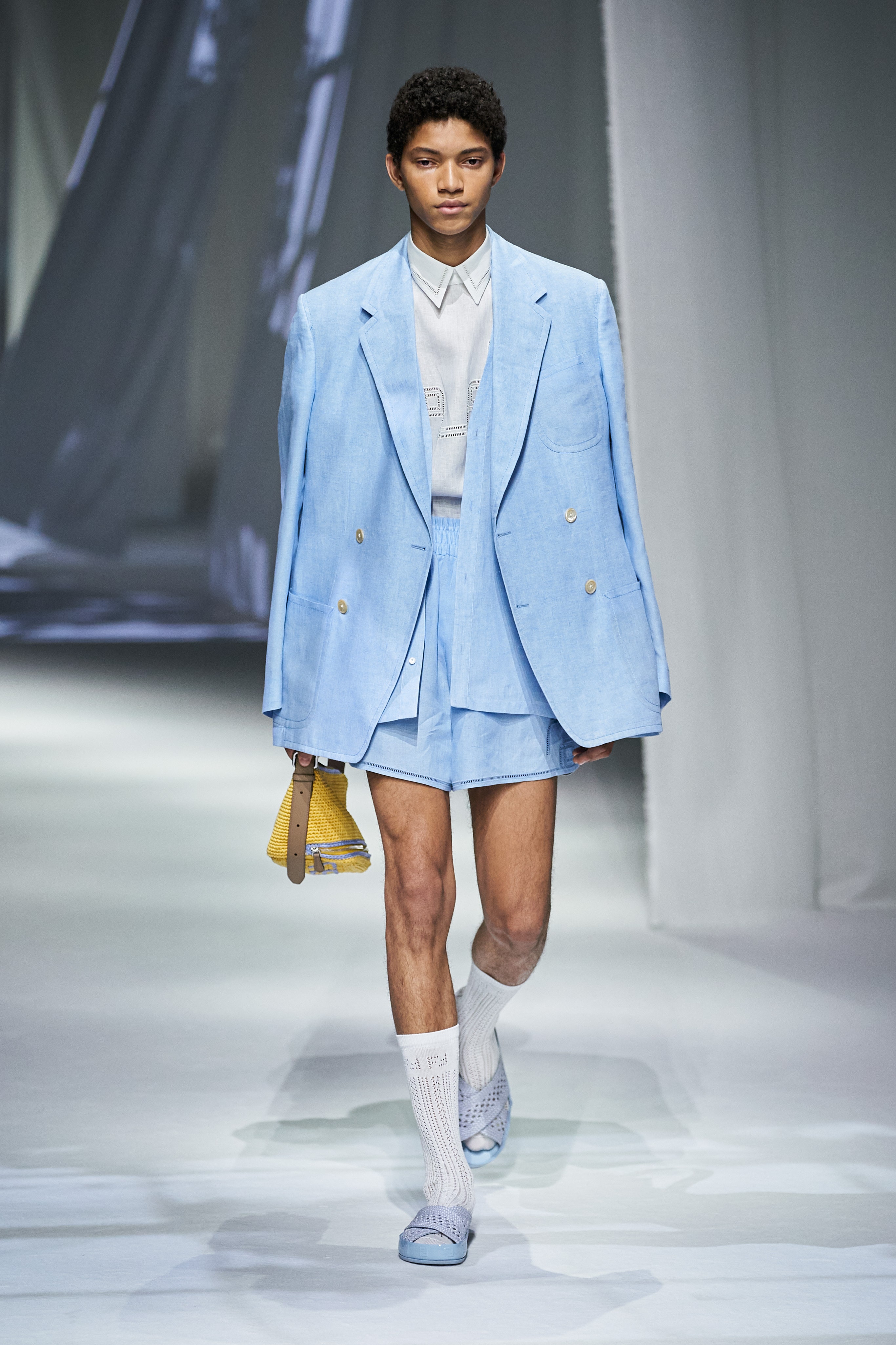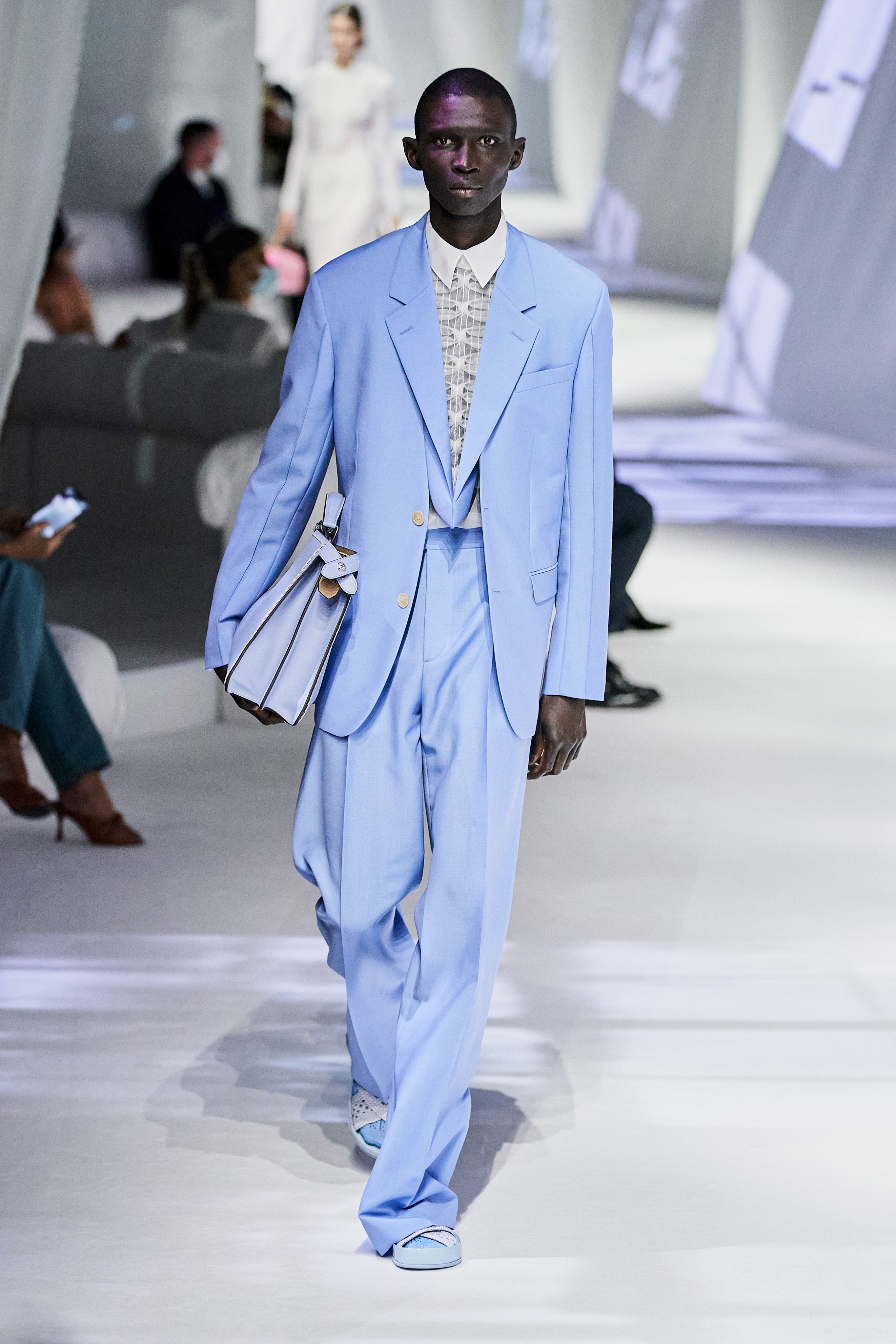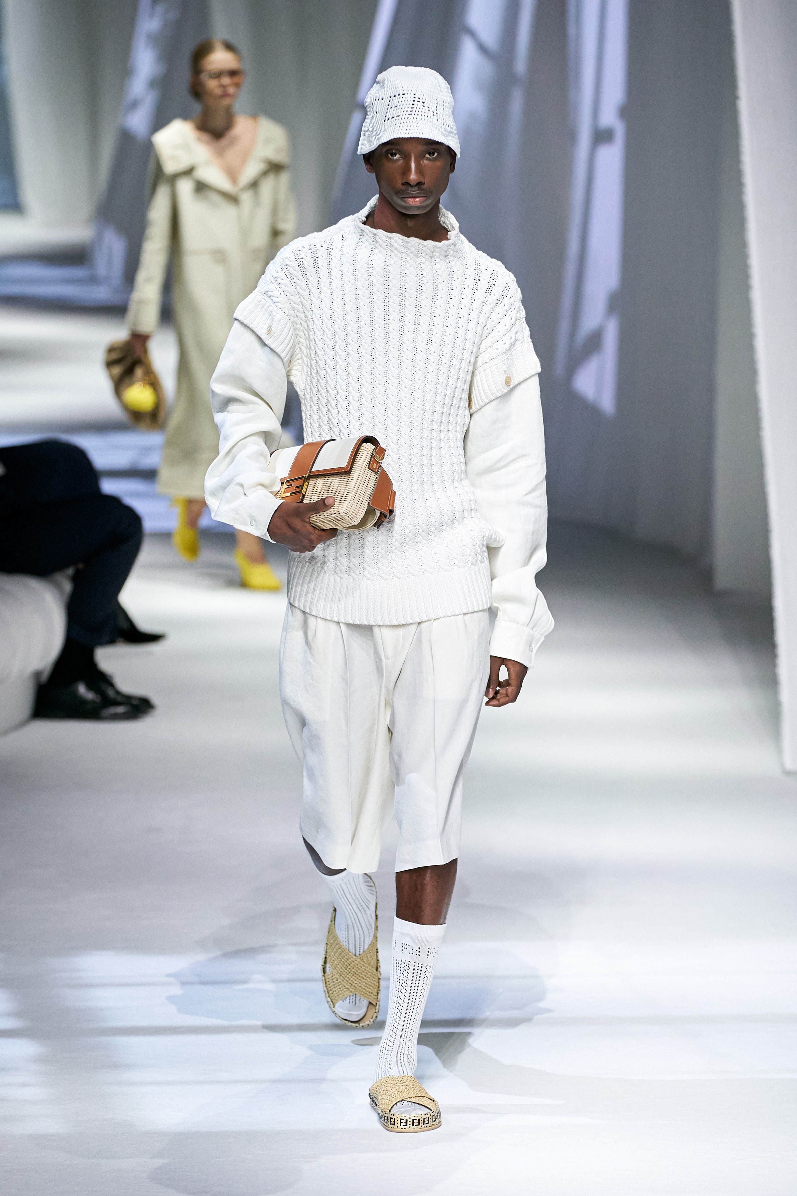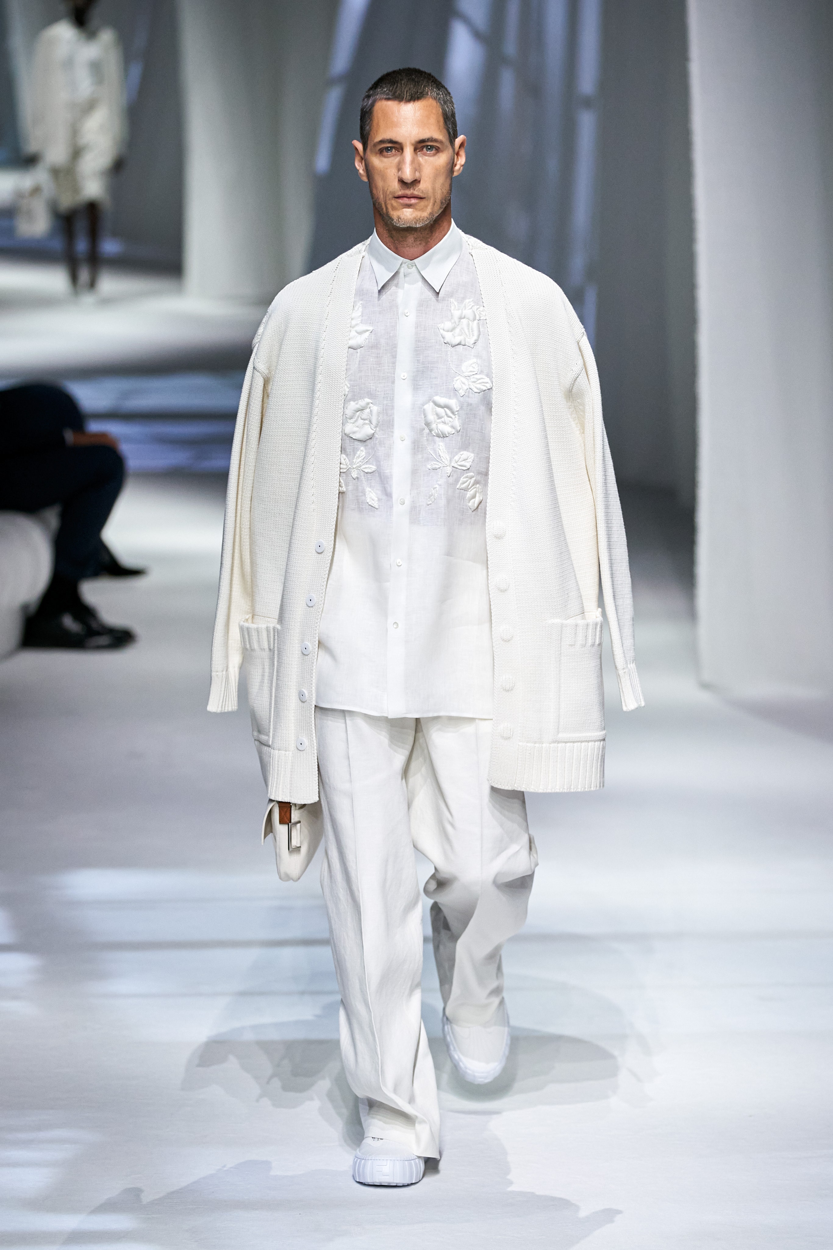 這是看完Fendi 2021春夏大秀之後,第一個浮現在腦海的畫面與句子。這場大秀給我一種極度放鬆、愜意、浪漫、反思,在回顧過去的同時,融入新意的系列。