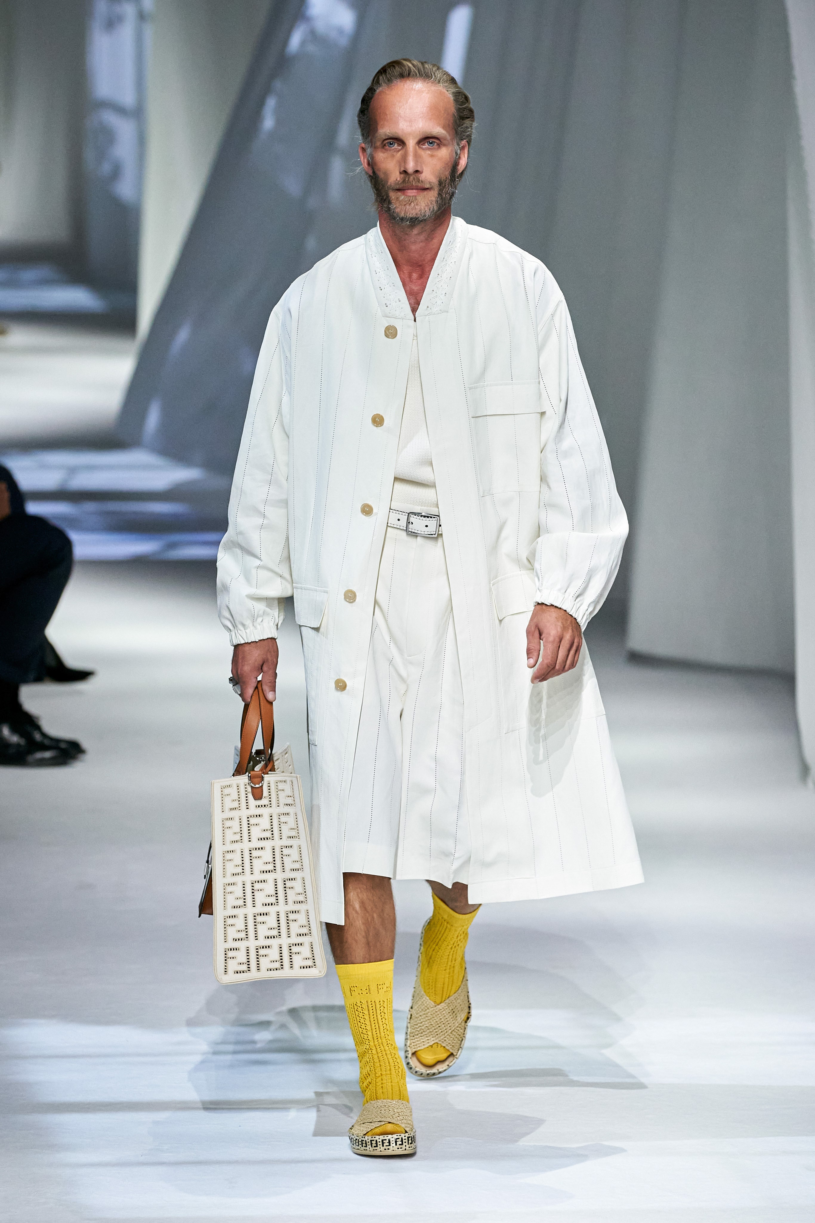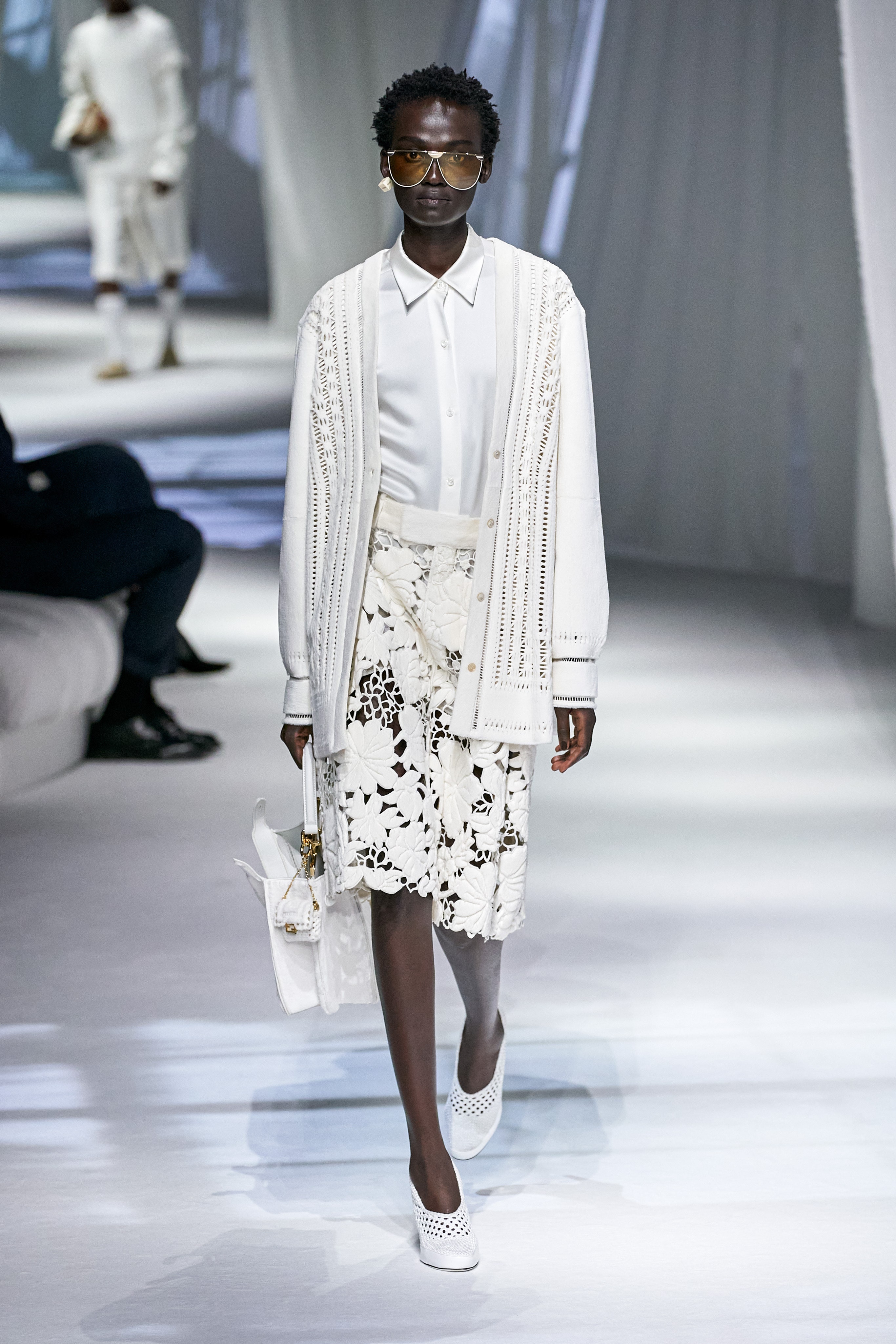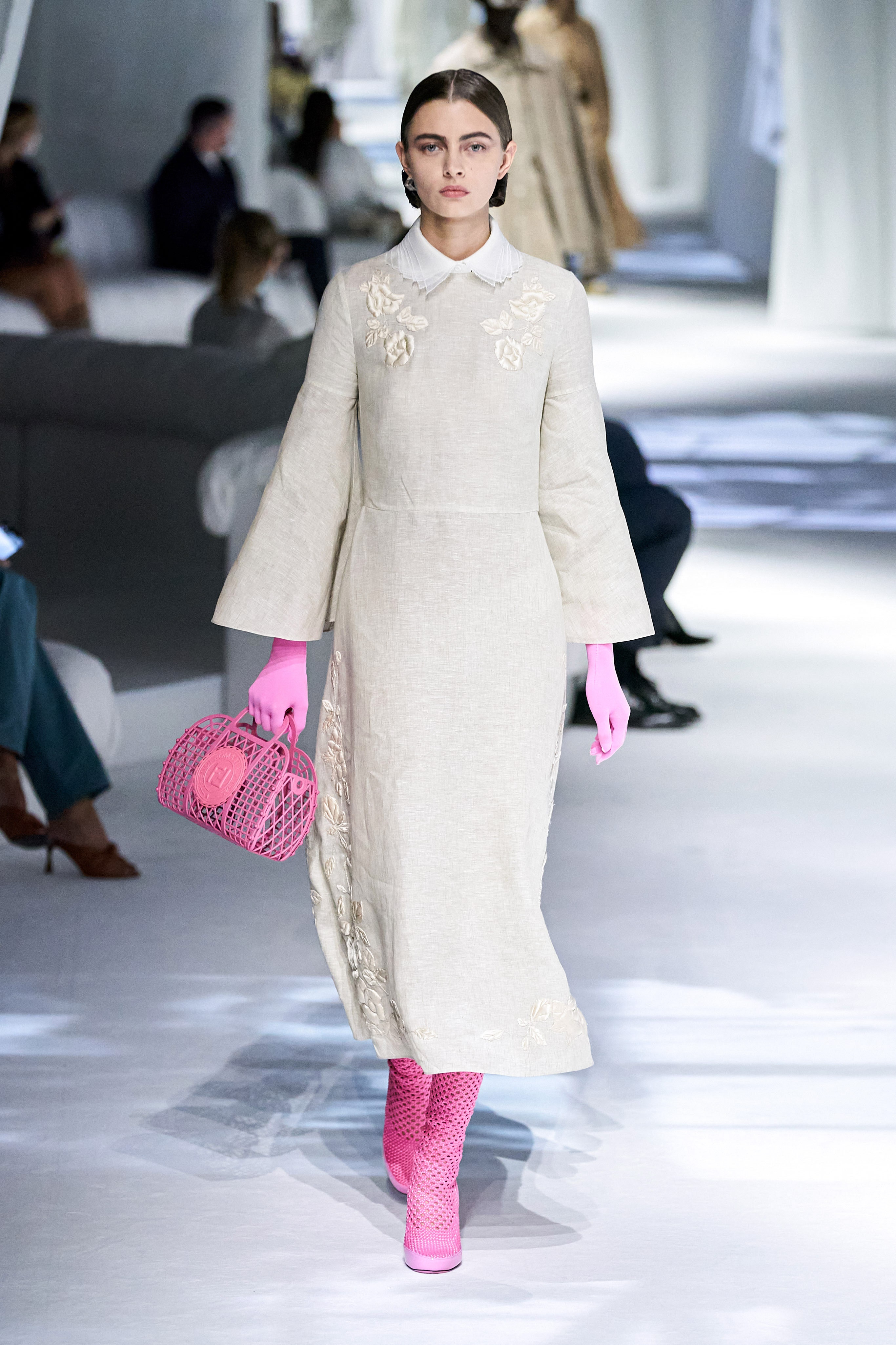 這是看完Fendi 2021春夏大秀之後,第一個浮現在腦海的畫面與句子。這場大秀給我一種極度放鬆、愜意、浪漫、反思,在回顧過去的同時,融入新意的系列。
