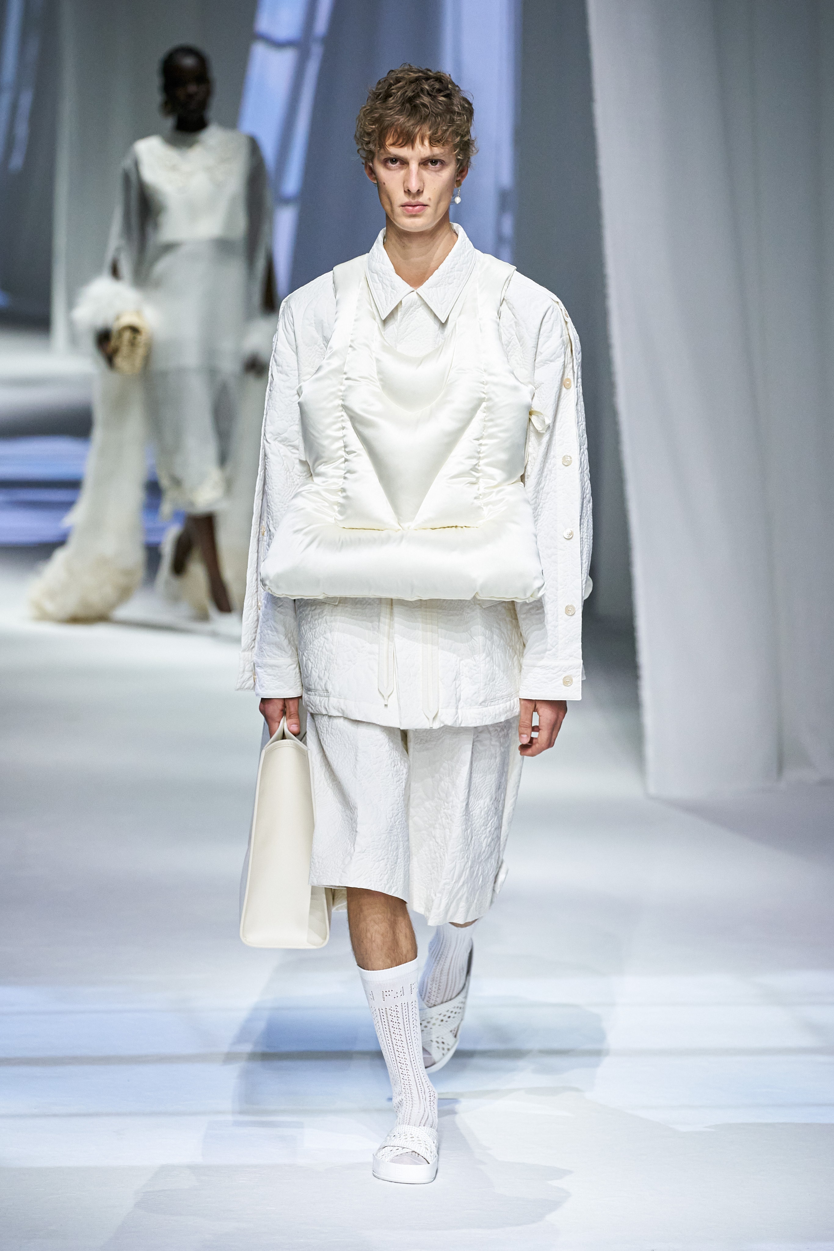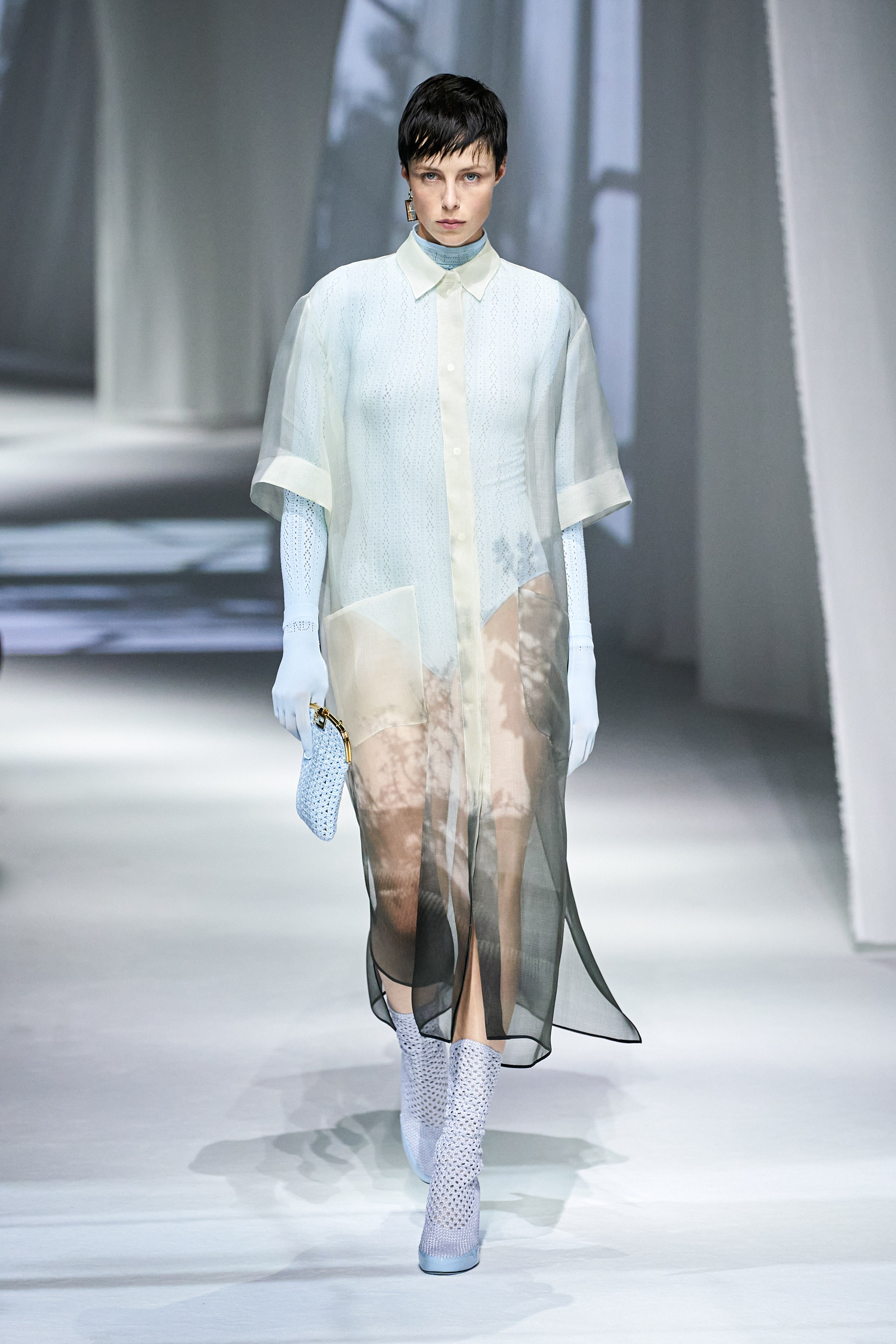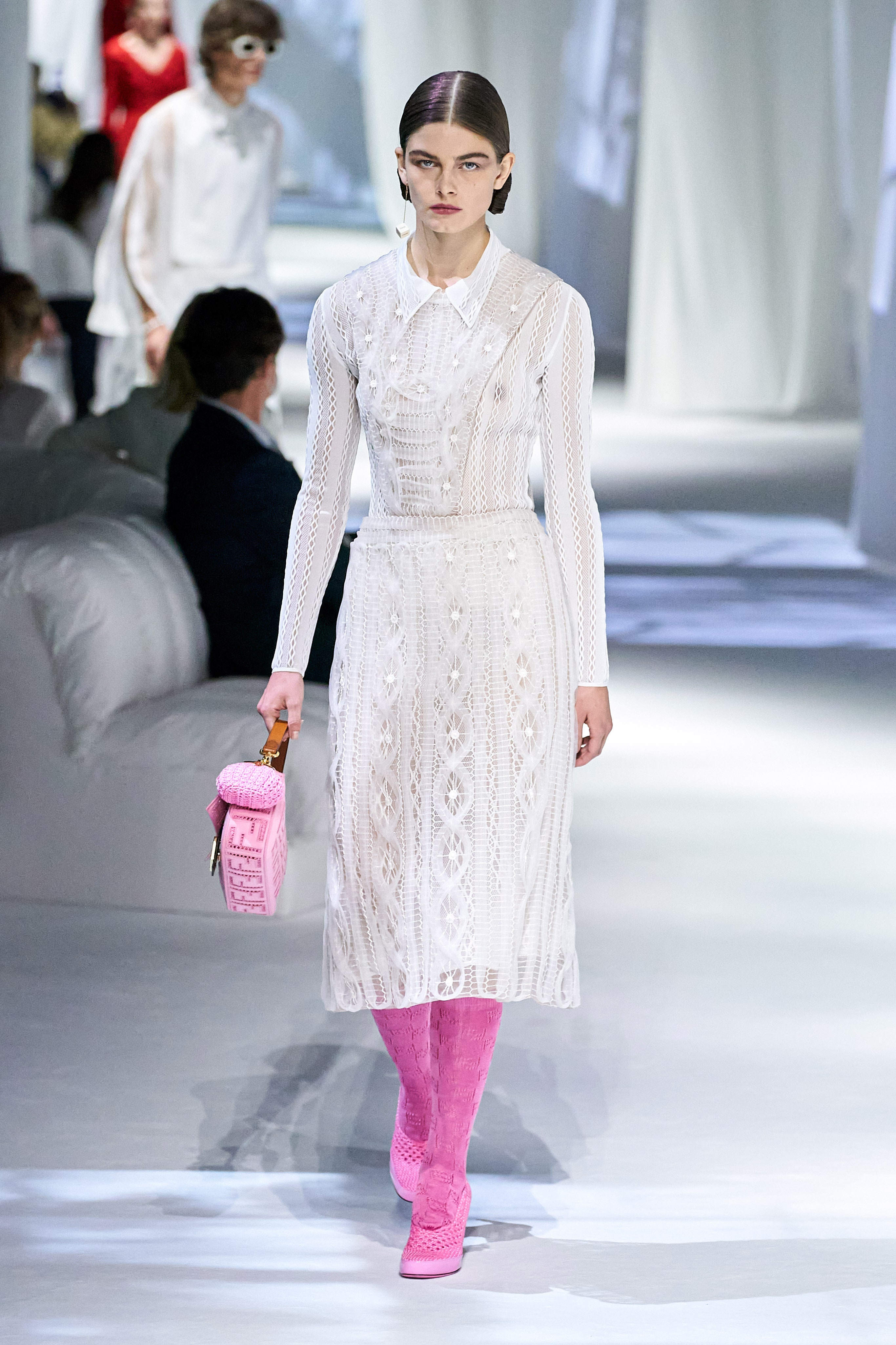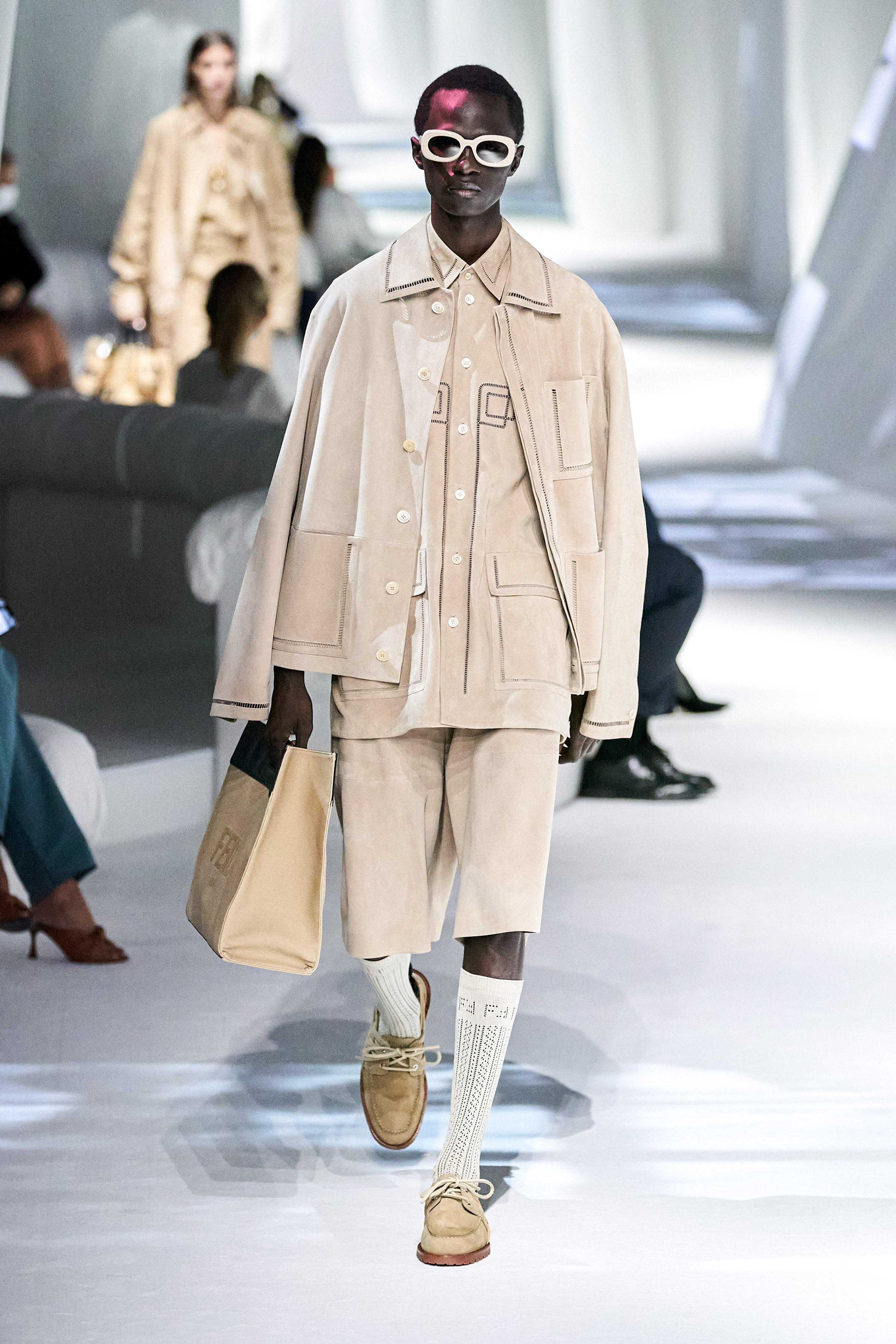 這是看完Fendi 2021春夏大秀之後,第一個浮現在腦海的畫面與句子。這場大秀給我一種極度放鬆、愜意、浪漫、反思,在回顧過去的同時,融入新意的系列。