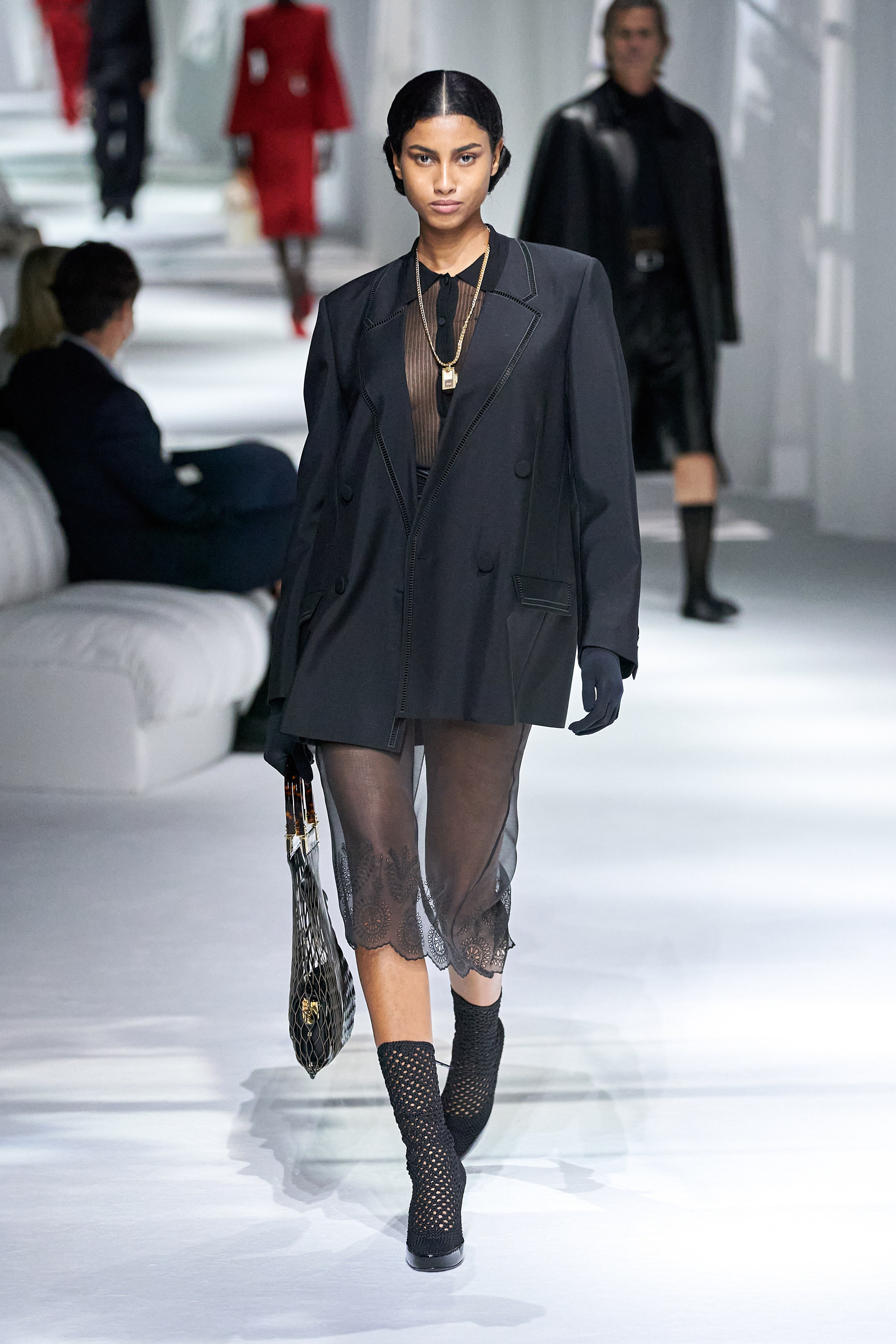 對Fendi來說,他們最後要訴諸的,要告訴我們的價值觀,就是秀前釋出短片的名稱「La Famiglia」(家庭)。在家庭裡能看到、吃到、感受到、獲得的各種細微瑣碎的情緒,都值得感激,無論外面世界考驗的嚴峻,最終,還是要回到自己的家(定義因人而異),讓自己安身立命。