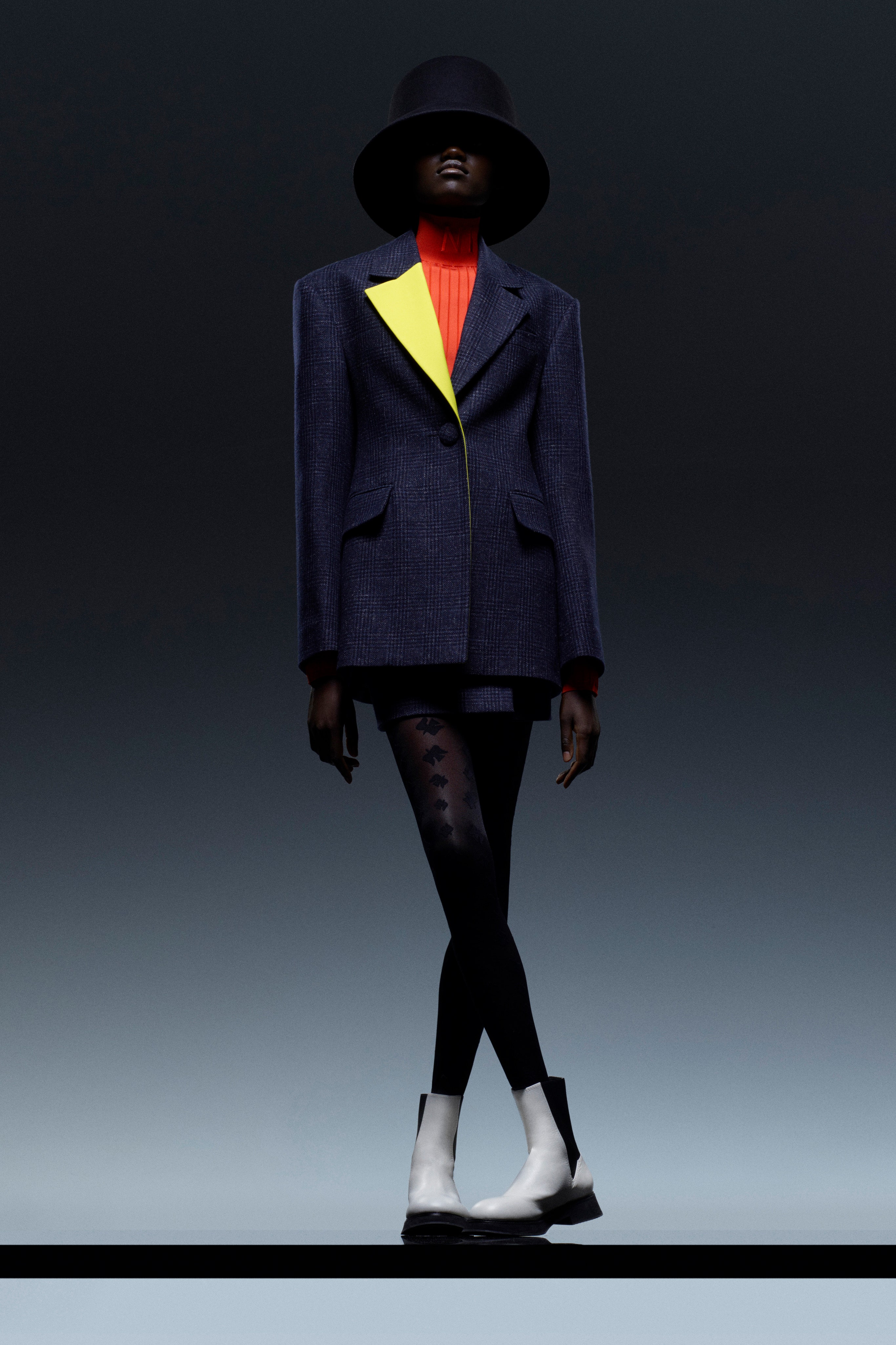 優雅與年輕並行,在顏色與印花、面料的搭配組合上非常搶眼,lookbook第一套格紋與藍色的拼接有點太好看,好想擁有!還有在西裝上利用黑色與亮黃色組合成對比衝撞感(領片那一塊好好看),但是在褲子又運用到千鳥格,讓層次感跳出,真厲害。還有簡單的海軍藍大衣,搭配不對稱的黃色領片,再加上橘色內搭高領,這樣的配色我要學起來!