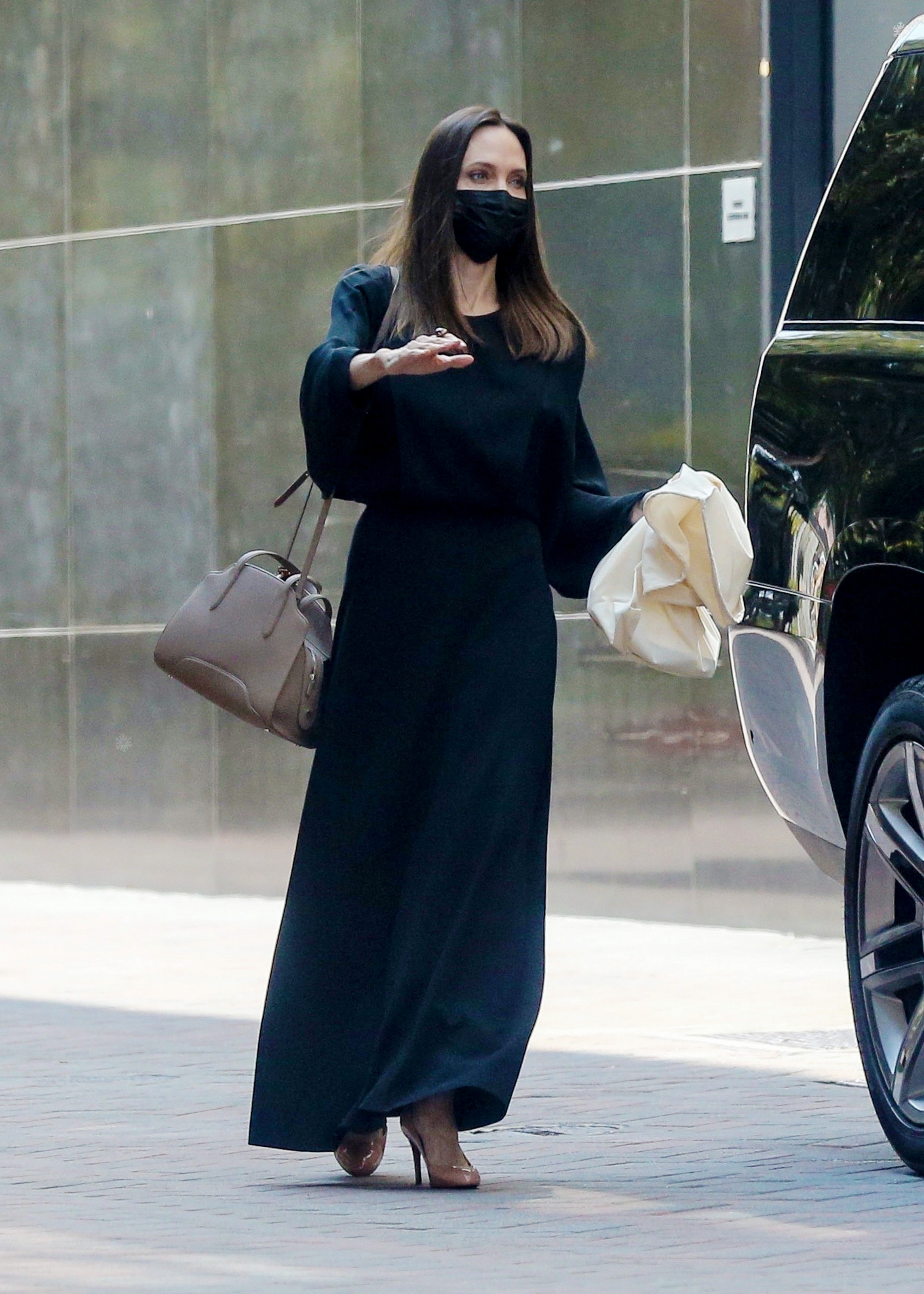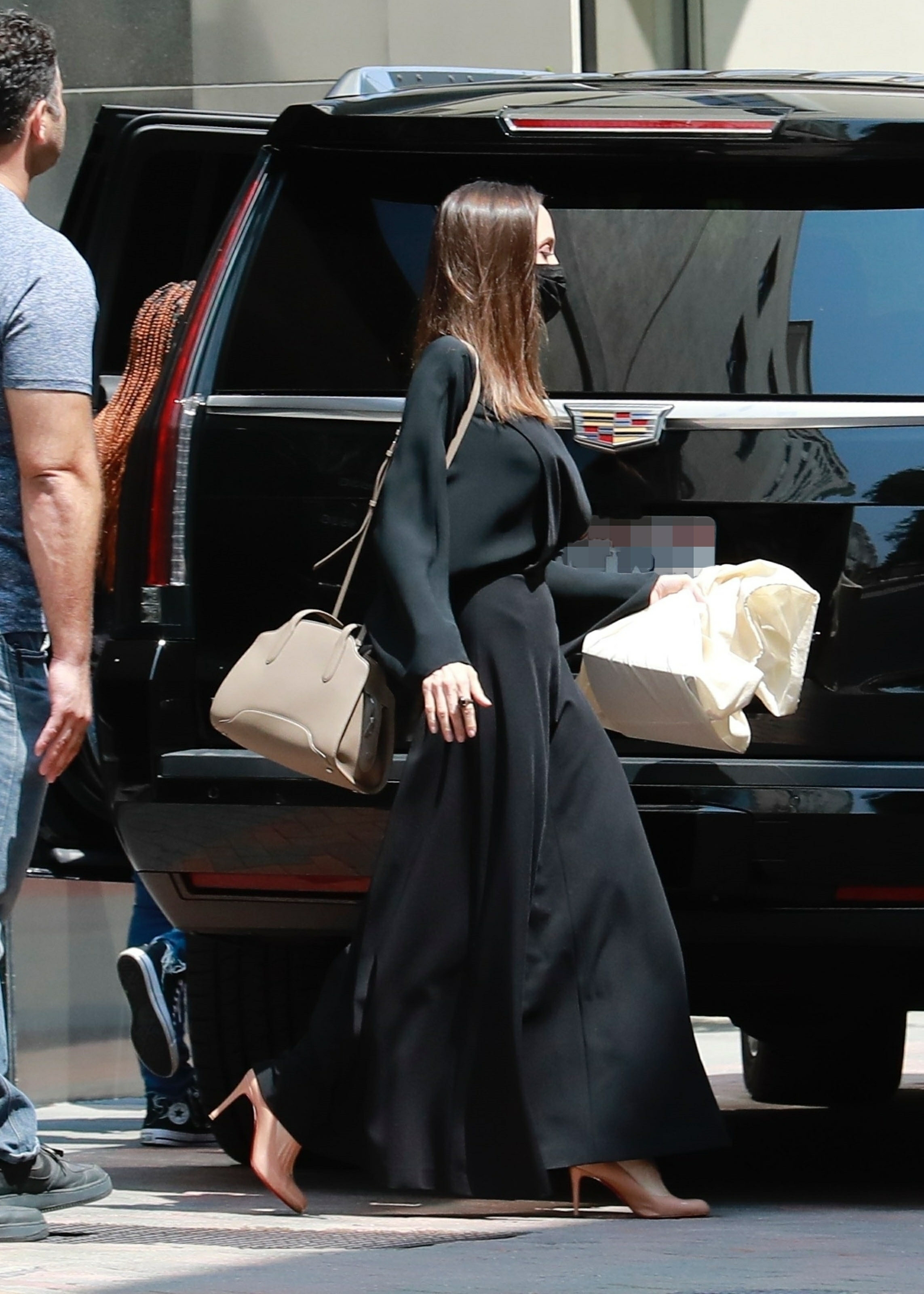 Angelina Jolie 私下很喜歡一身黑,這樣也總會凸顯她帶的包包。