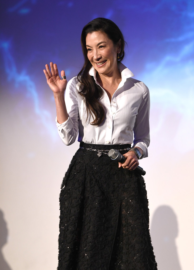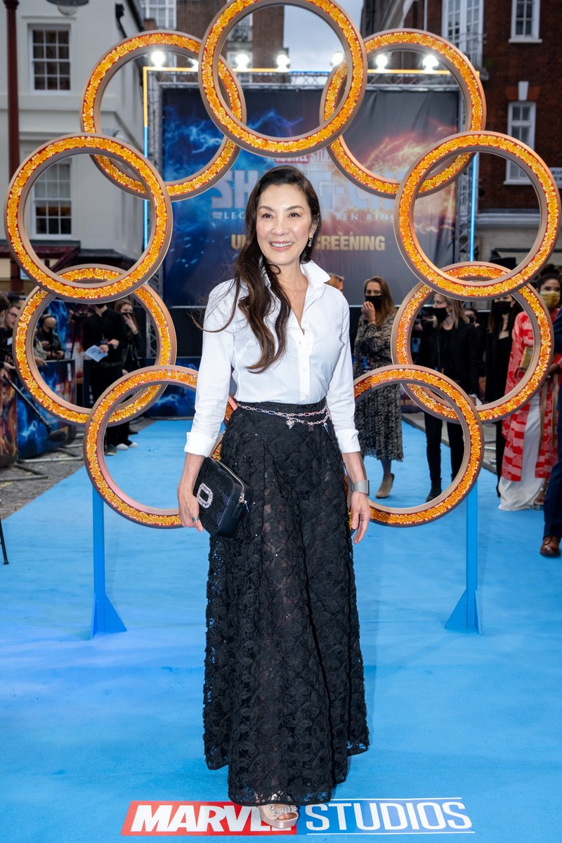 楊紫瓊出席《Shang-Chi》倫敦首映時,穿了 SHIATZY CHEN 2021秋冬亮相;簡單的白襯衫搭配黑色蕾絲長裙,喜歡她搭配的腰鍊,多了一些力道,手上的 Roger Vivier 手拿包也蠻搶眼的![]()
