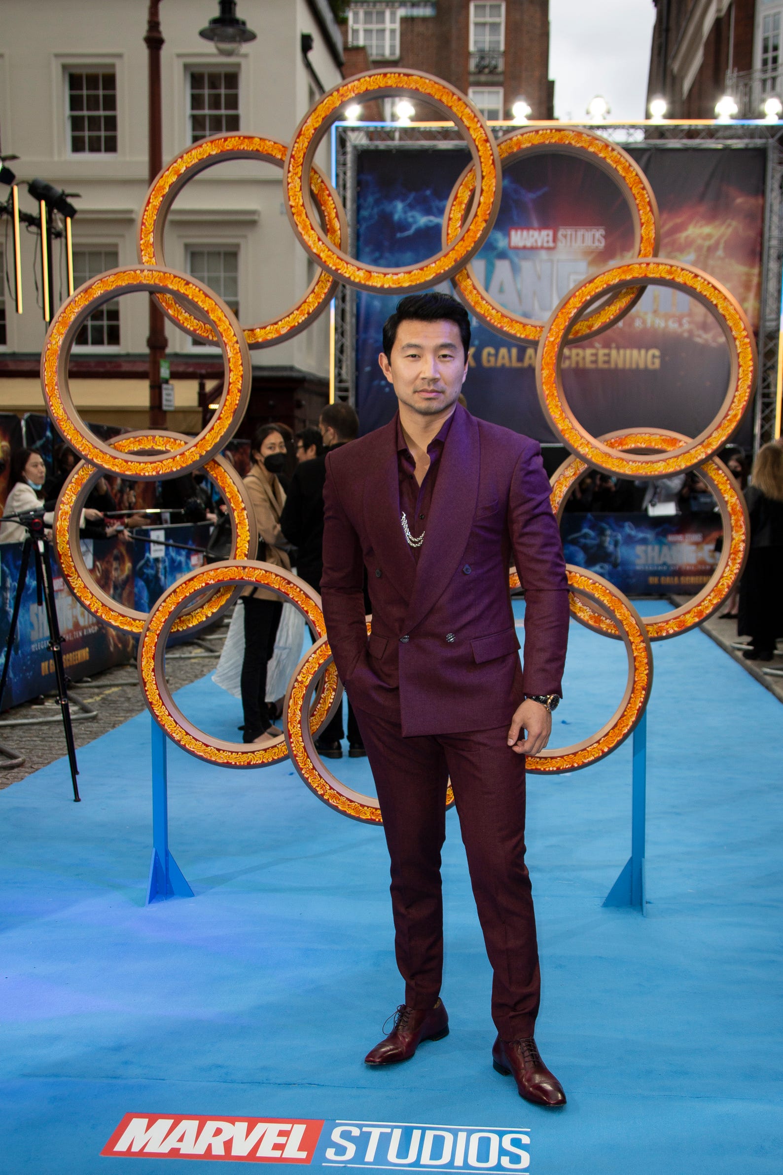 《Shang-Chi》在倫敦舉行首映典禮,男主角 Simu Liu 身穿Gray Scale的西裝,搭配 Christian Louboutin 的靴子亮相,這套讓他的肩膀看起來相當寬闊,好有安全感![]()