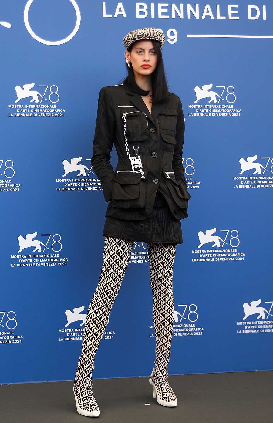 Milena Smit 出席《Madres Paralelas》在威尼斯影展的photocall時,選穿了 MARINE SERRE 2021春夏。