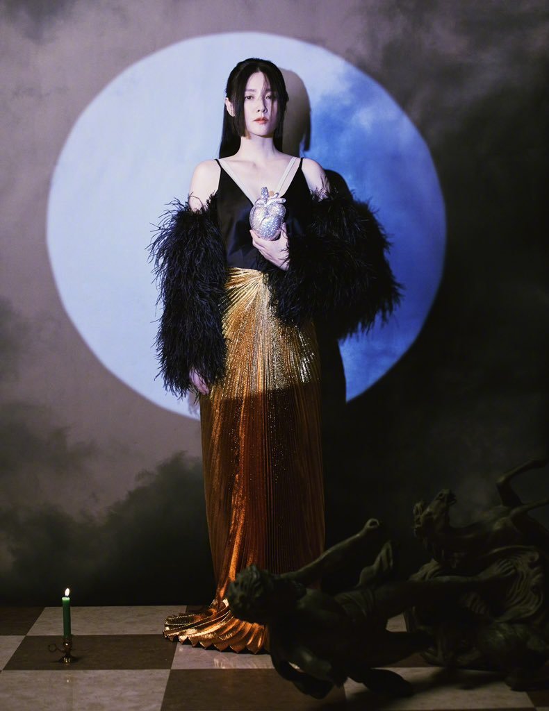 她這次是穿上 Gucci 《ARIA》的系列,第一張封面那顆心臟包真的太有存在感,好想摸實體喔