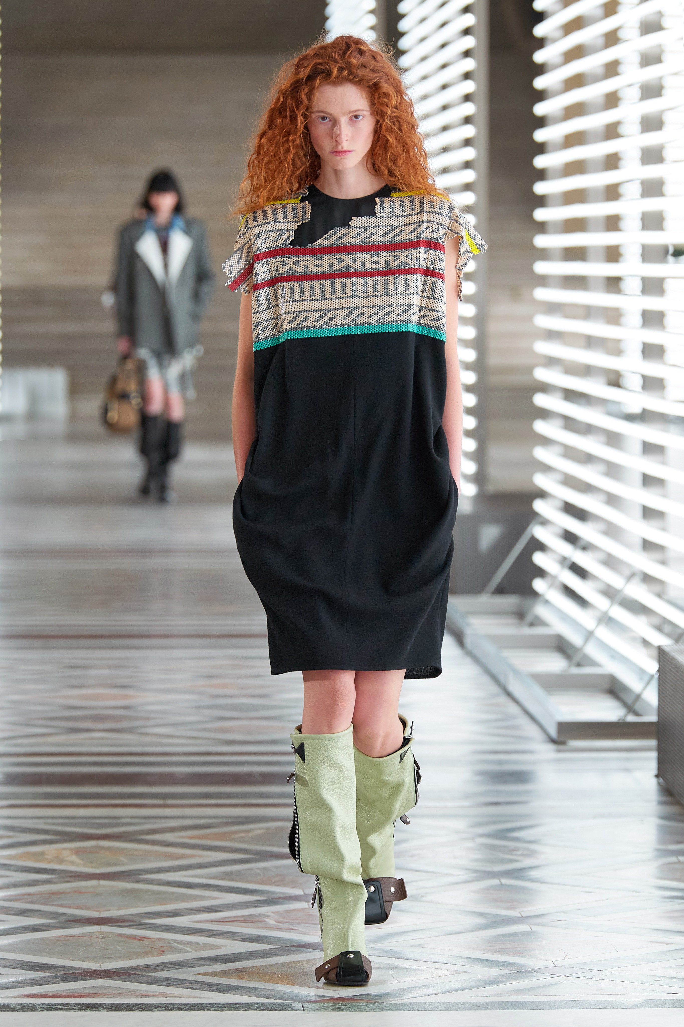 腳上 Christian Louboutin 搭得很好,和秀上無限延伸腿長的款式各有各的好![]()