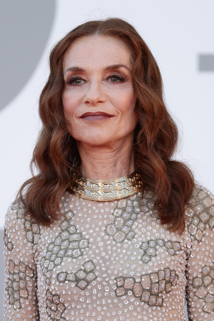 Isabelle Huppert在《Madres Paralelas》威尼斯影展首映紅毯上,是選了 Armani Prive 的高級訂製服作為戰袍。