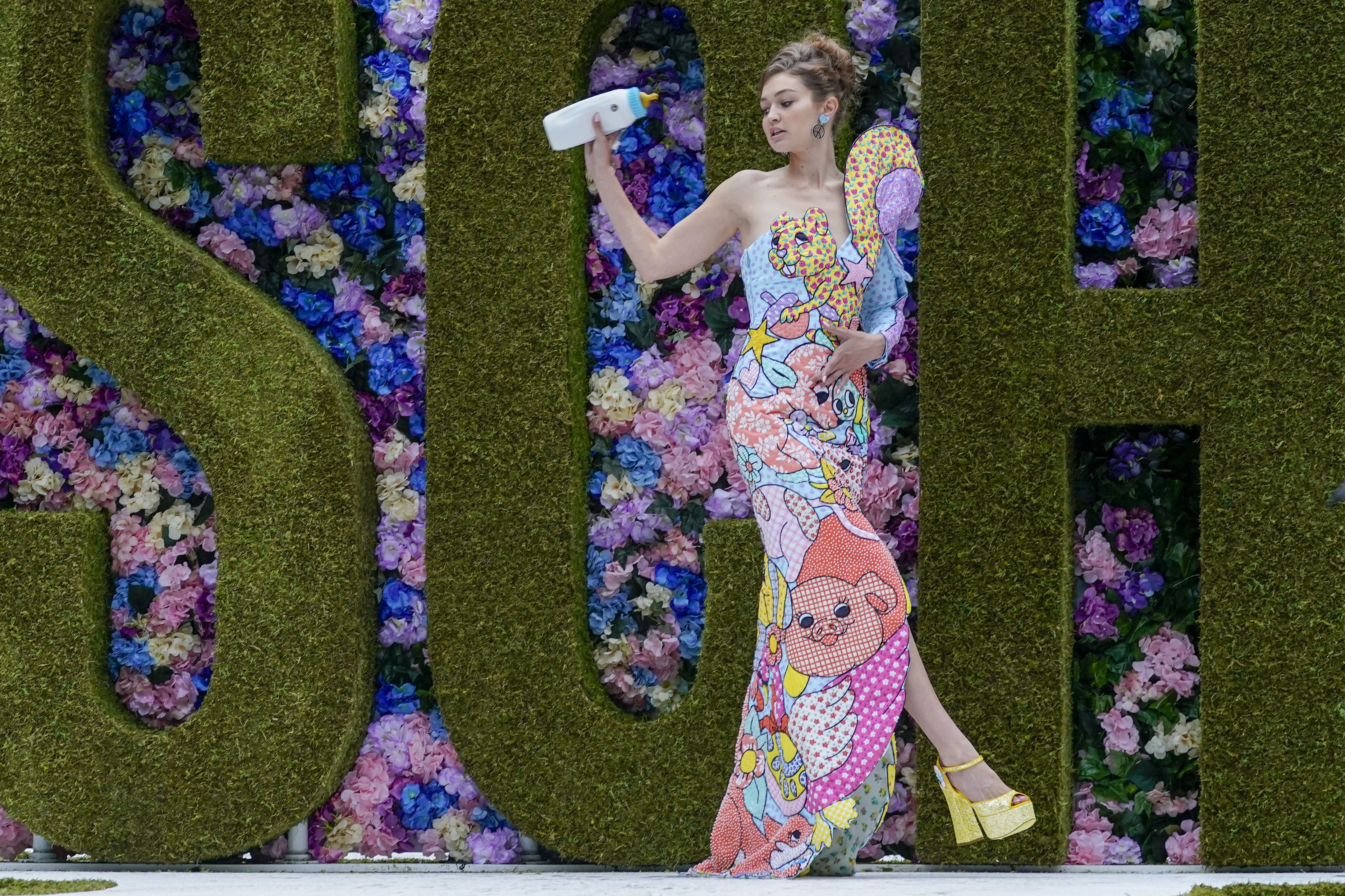 這次把卡通動物們(嗚嗚,我想不起來這些動物們的名字)做成禮服,讓我們時時都能提醒自己,有時幼稚一點真的無傷大雅,這個系列我想新手媽媽 Gigi Hadid 一定很有感吧哈哈哈哈,還有奶瓶包太可愛惹![]()