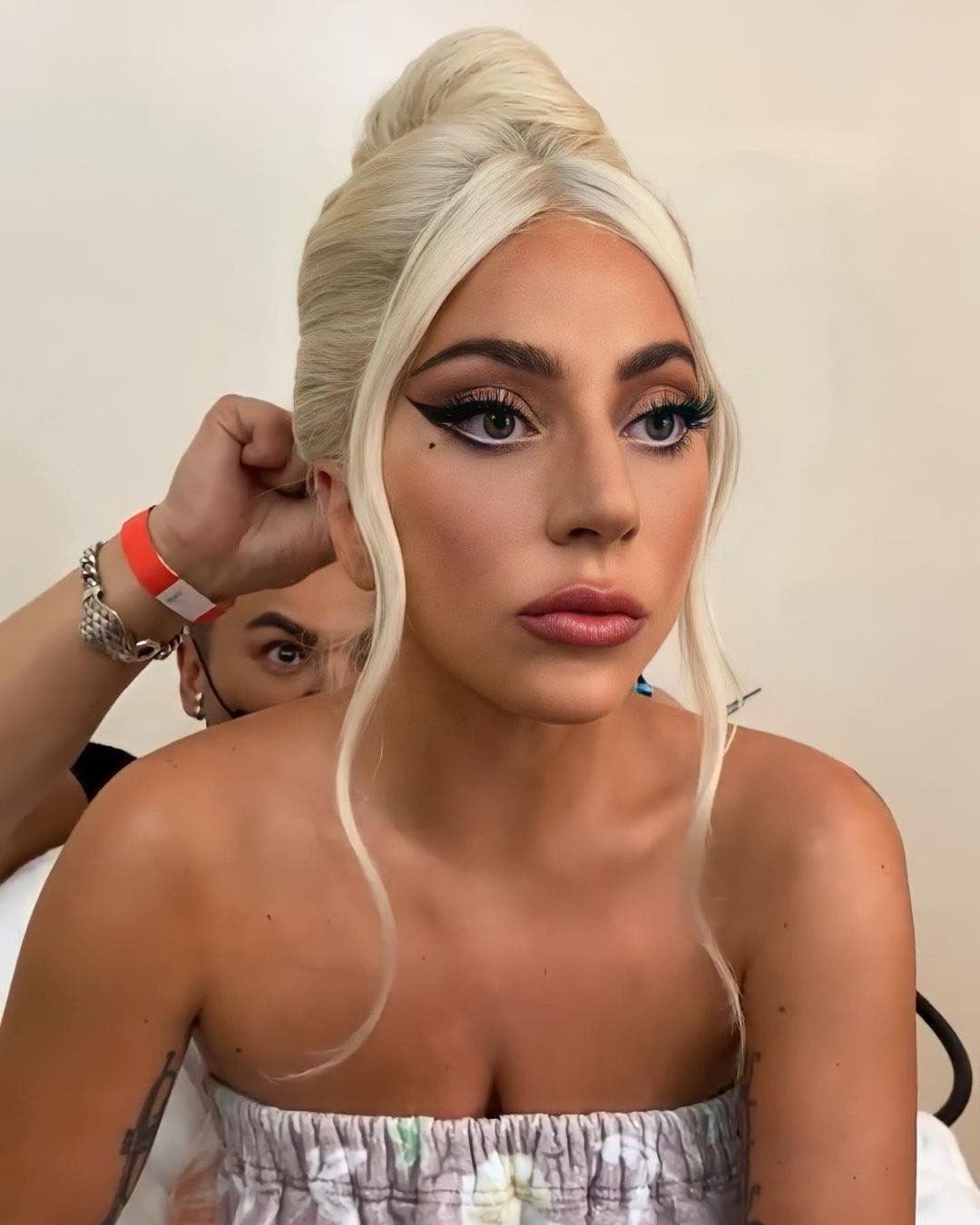 Lady Gaga 在 Westfield 演出的造型是一個極端優雅(還有認不出)的路線,她身穿 Elie Saab 2022早春的禮服,其實禮服是無懈可擊的好看,無論是百褶的流動感還是羽毛的華麗感都很好,但就覺得這髮型有點太搶戲了。