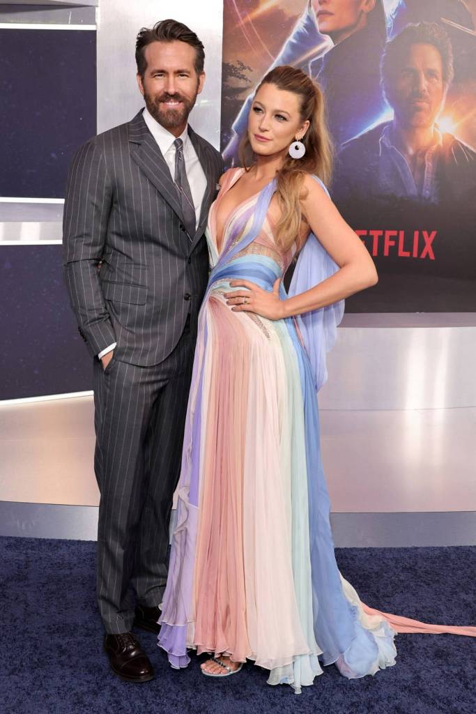 Queen S Blake Lively 和腦公 Ryan Reynolds 一起出席《The Adam Project》的首映典禮, 她一身彩虹小馬 2019春夏Atelier Versace 高級訂製服真是太美!斑斕的色彩,俏麗又性感,太漂釀