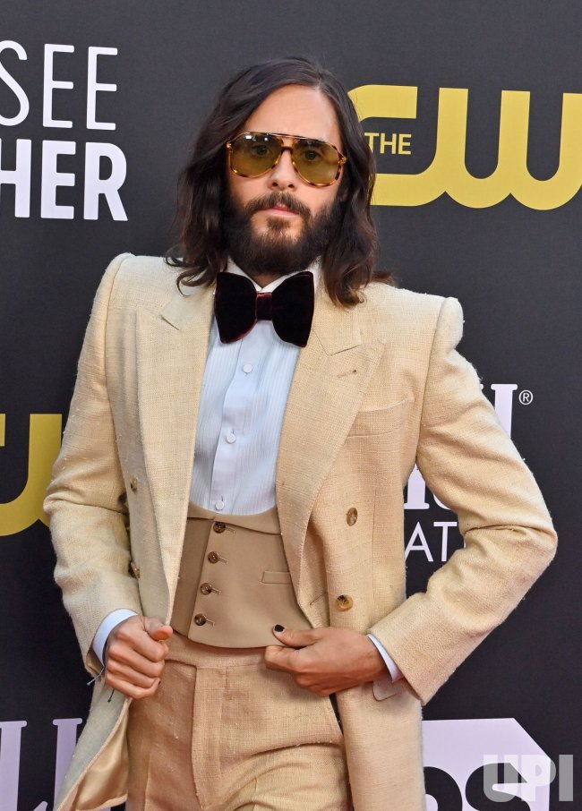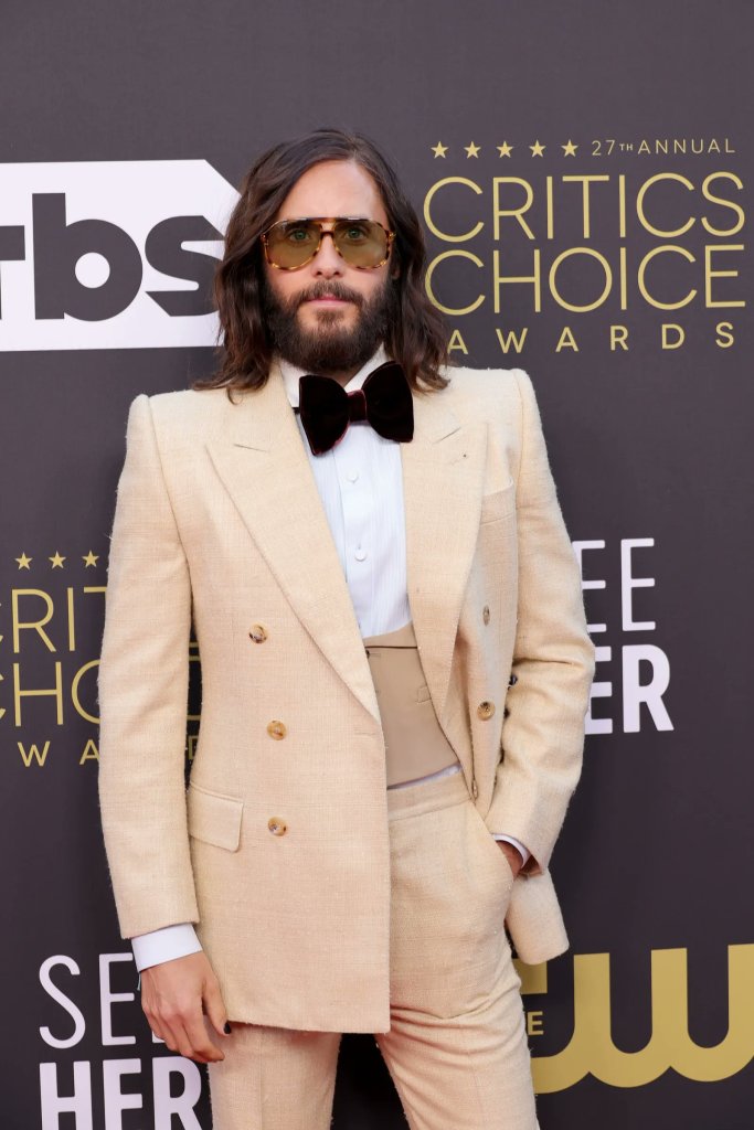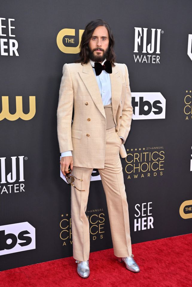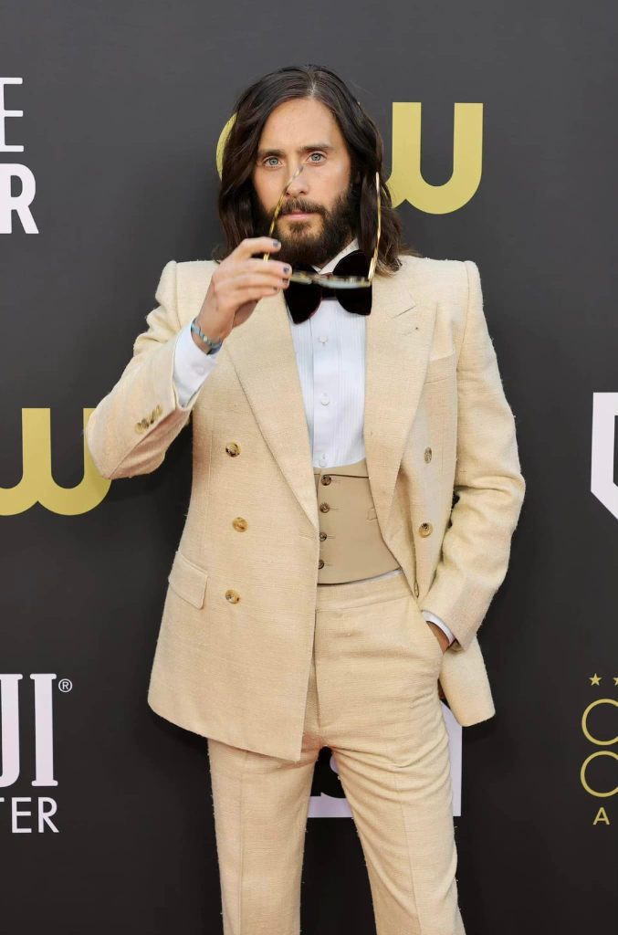 Jared Leto 也出席Critics Choice Awards,我想他會穿哪一家禮服出席大家都知道了對不對,來,這是哪家(遞麥克風):