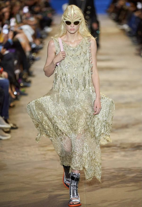 在這個頒獎典禮上,她穿了 Gucci 特別訂製的禮服,這件是由Love Parade 秀上兩件融合的延伸款,只能說她坦蕩蕩…