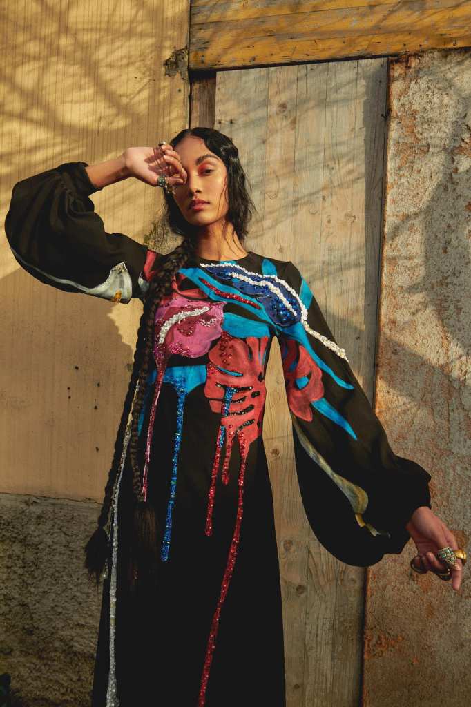 這件有點成熟風格的洋裝,刺繡好像有點藝術感也有一咪咪驚悚感,想看她穿褲裝啦