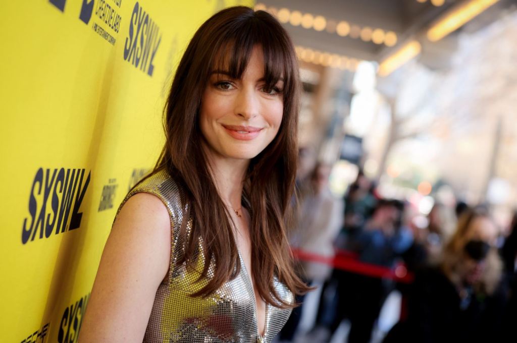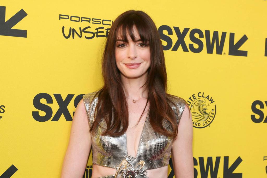 性感甜美的 Anne Hathaway 出席西南偏南電影節宣傳新劇時,穿的是來自 Versace 2022春夏的銀色禮服。