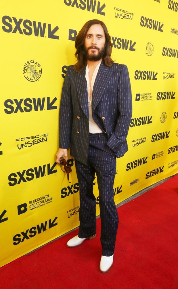 同場加映 Jared Leto 一起出席西南偏南電影節和小安宣傳新劇的照片;他身穿 Gucci Love Parade 系列的西裝,搭配帶點柔美浪漫感的絲質上衣,再配上指甲油與閃閃動人的秀髮,好帥欸,性別現在真的叫也許