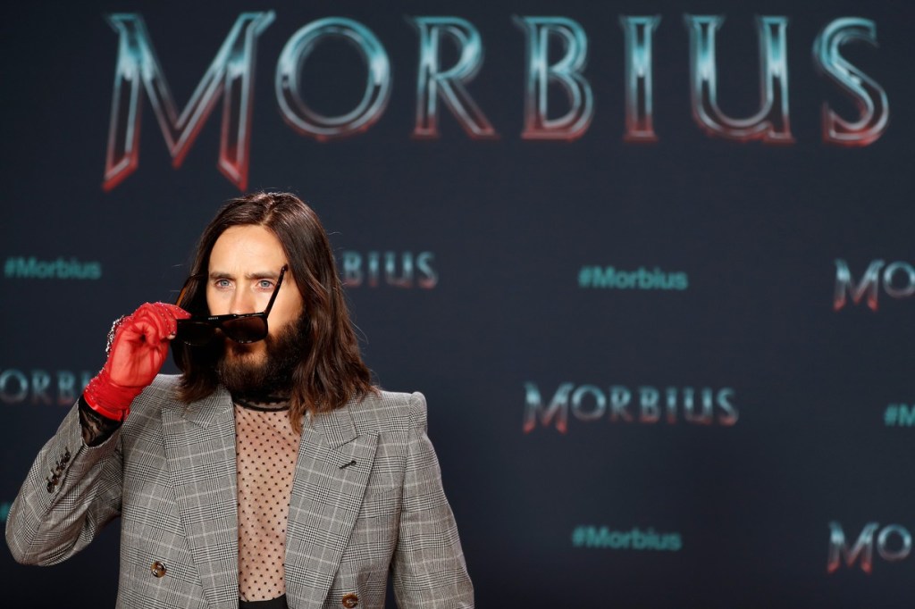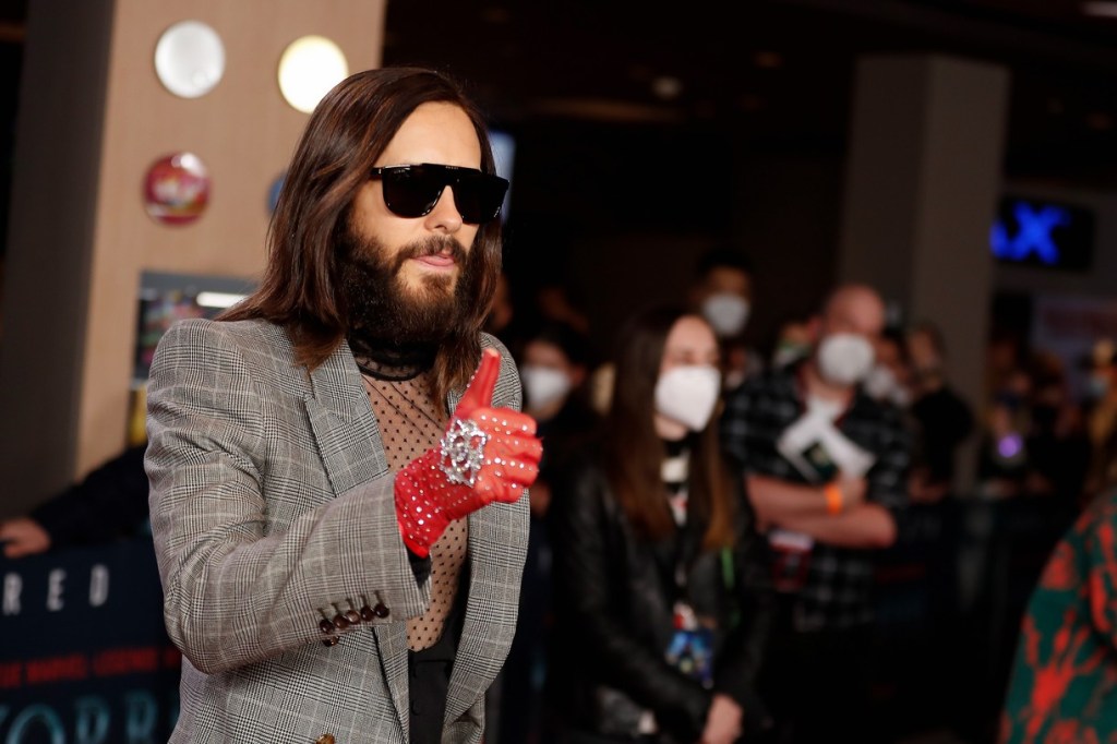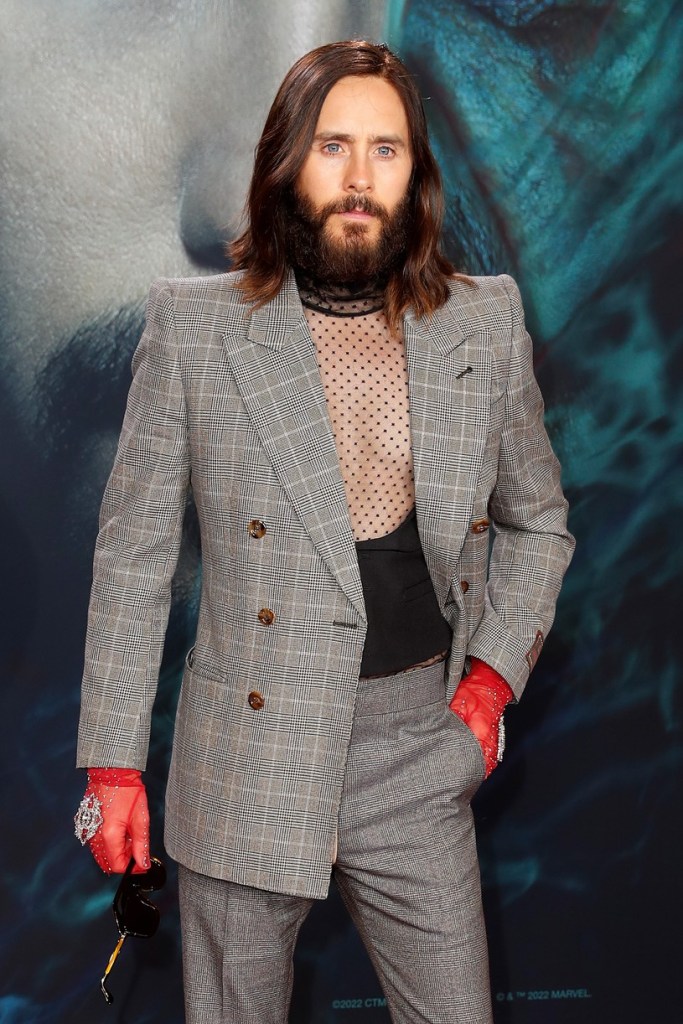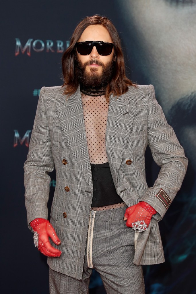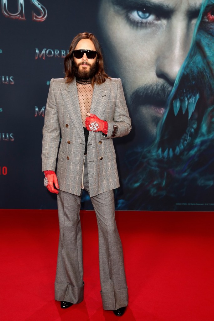 Jared Leto 在柏林出席《Morbius》粉絲試映會時,穿了 Gucci Love Parade的西裝亮相。