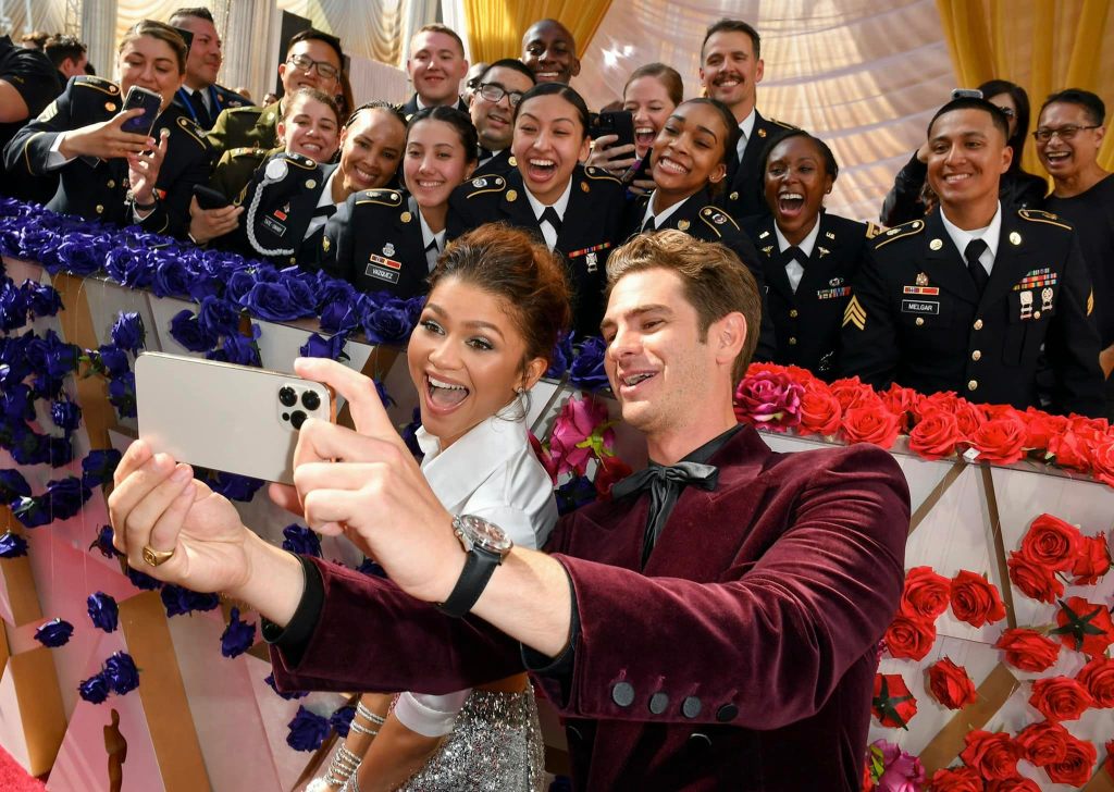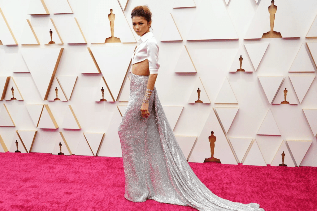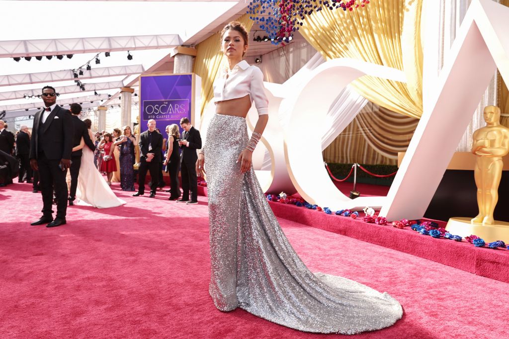 Zendaya 今天在奧斯卡頒獎典禮上,是以 Valentino 特別訂製的高級訂製服亮相,這件是由2022春夏款延伸而來,高雅又華麗,同時又能把她的纖腰線條展露無遺,珠寶手環搭配得非常好看!