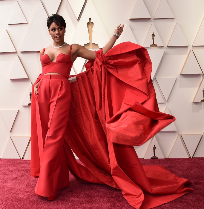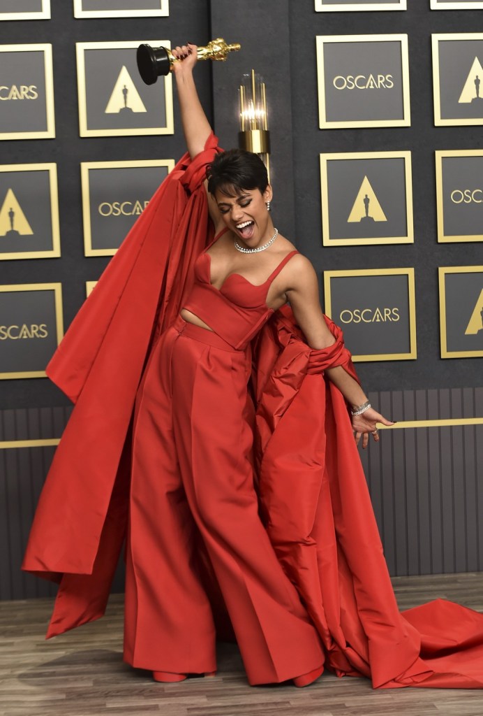 拿下今年最佳女配角獎的 Ariana DeBose ,一身 Valentino 高級訂製服紅紅火火,浪漫大器又有點帥!