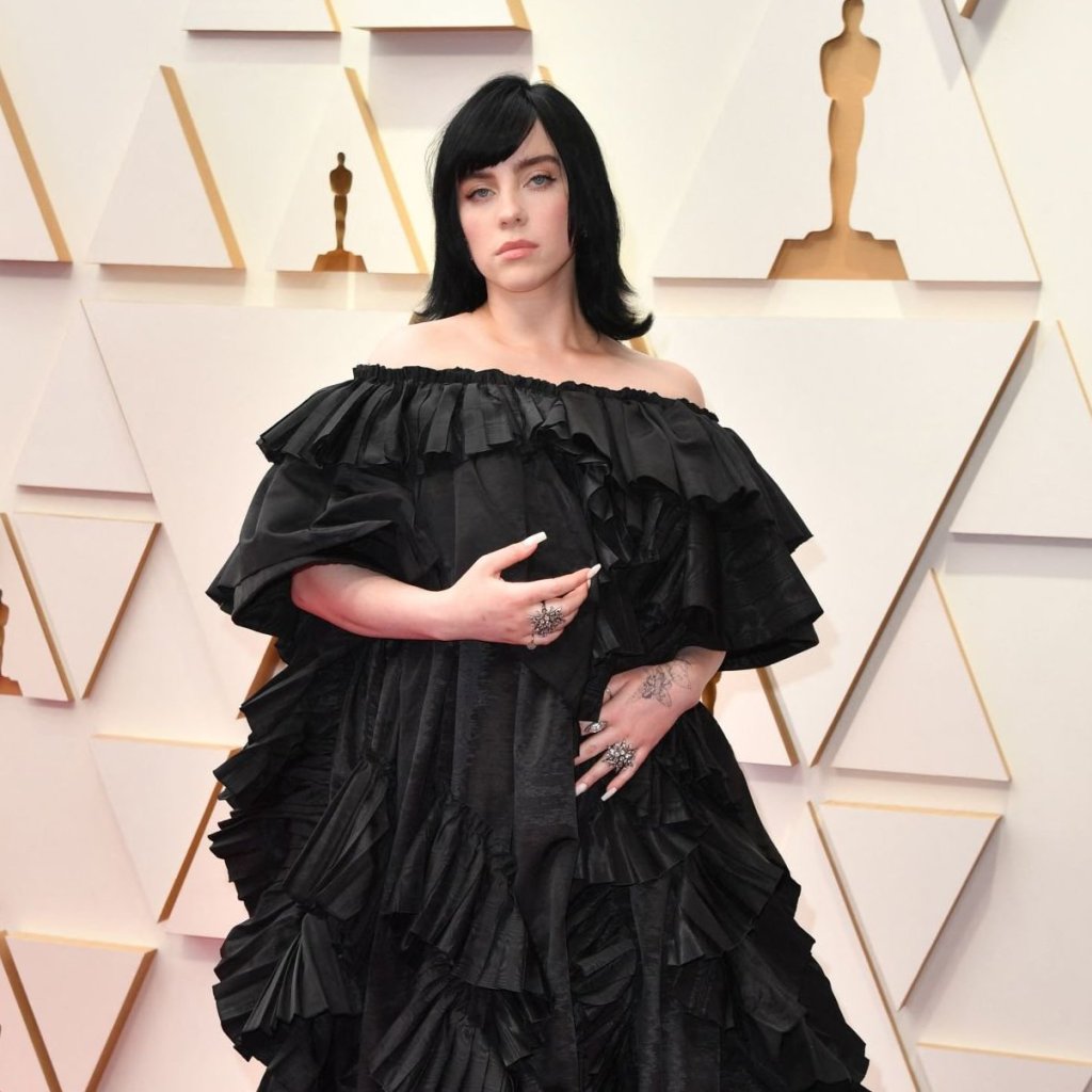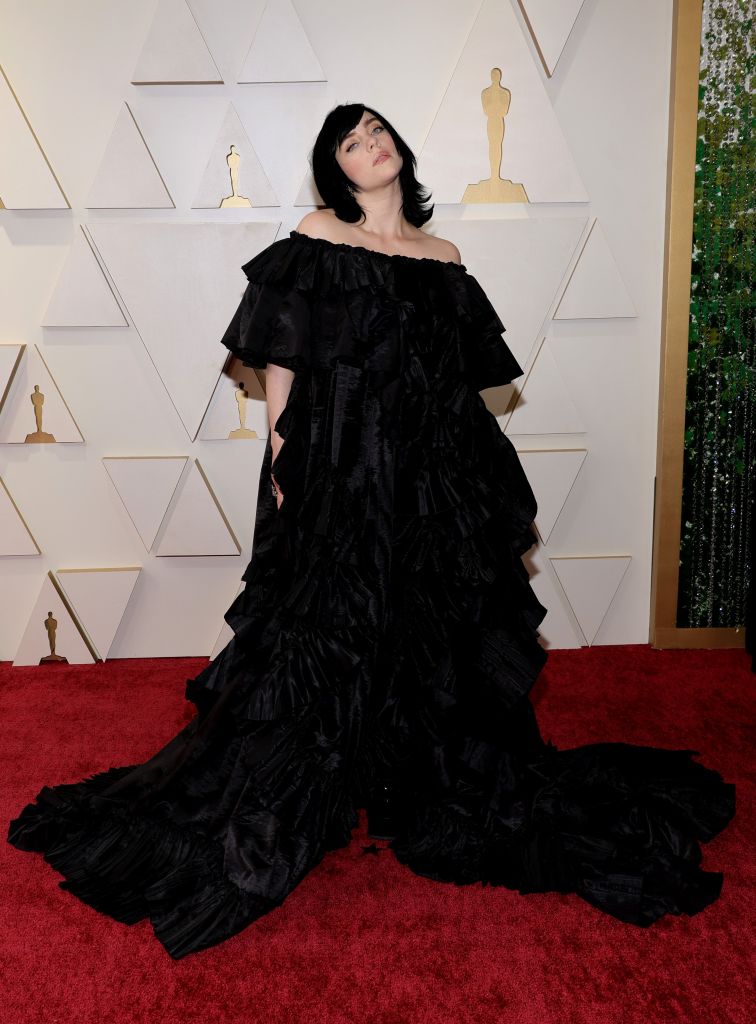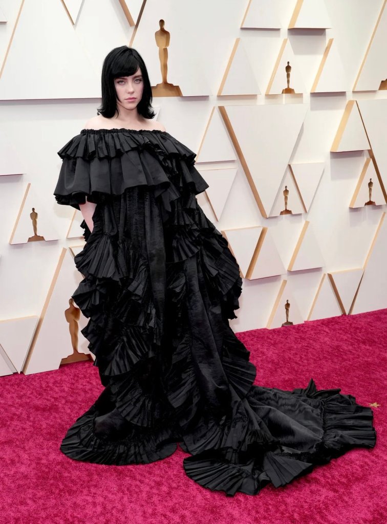 Billie Eilish 穿上 Gucci 特別訂製的多層次荷葉邊黑色禮服出席奧斯卡頒獎典禮,這似乎也是她的風格,有點怪,有點浪漫,有點氣勢,有點美。