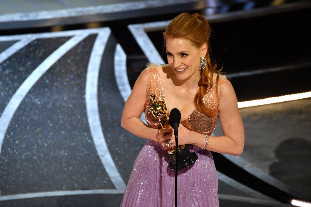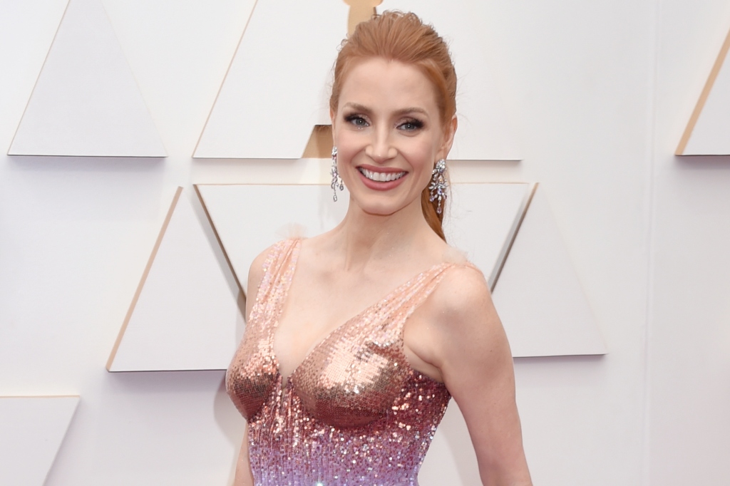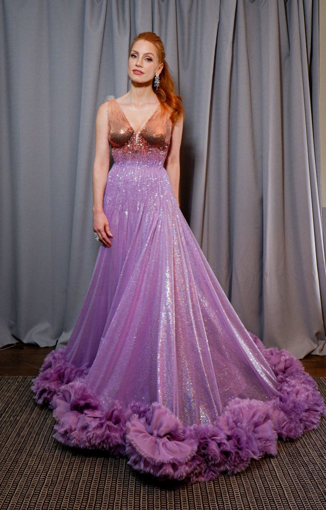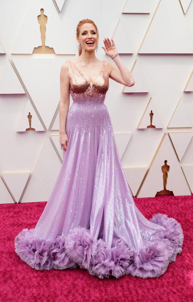 奧斯卡紅毯第一套我們來看 Jessica Chastain !