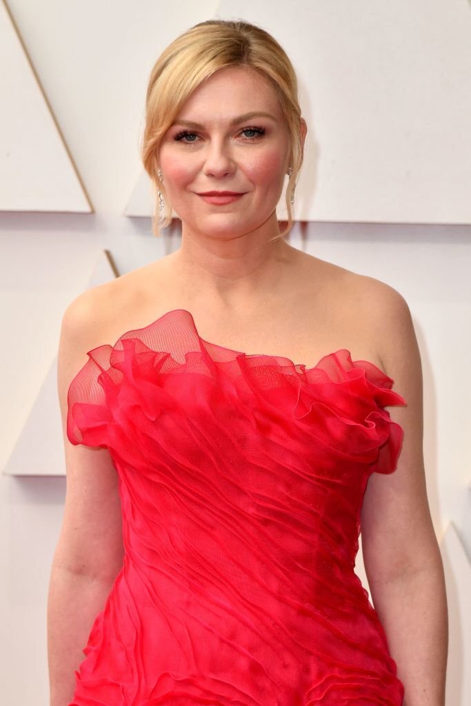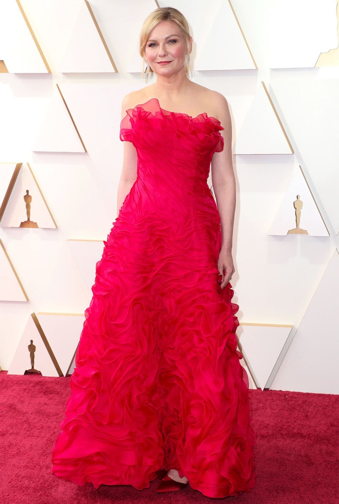 Kirsten Dunst 今天在奧斯卡紅毯上是以 Christian Lacroix 2002 秋冬高級訂製服作為戰袍,這件紅色平口禮服有著細膩浪漫的荷葉邊,也像是花瓣的紋路,好看,但好像走來奧斯卡氣勢少了一點?