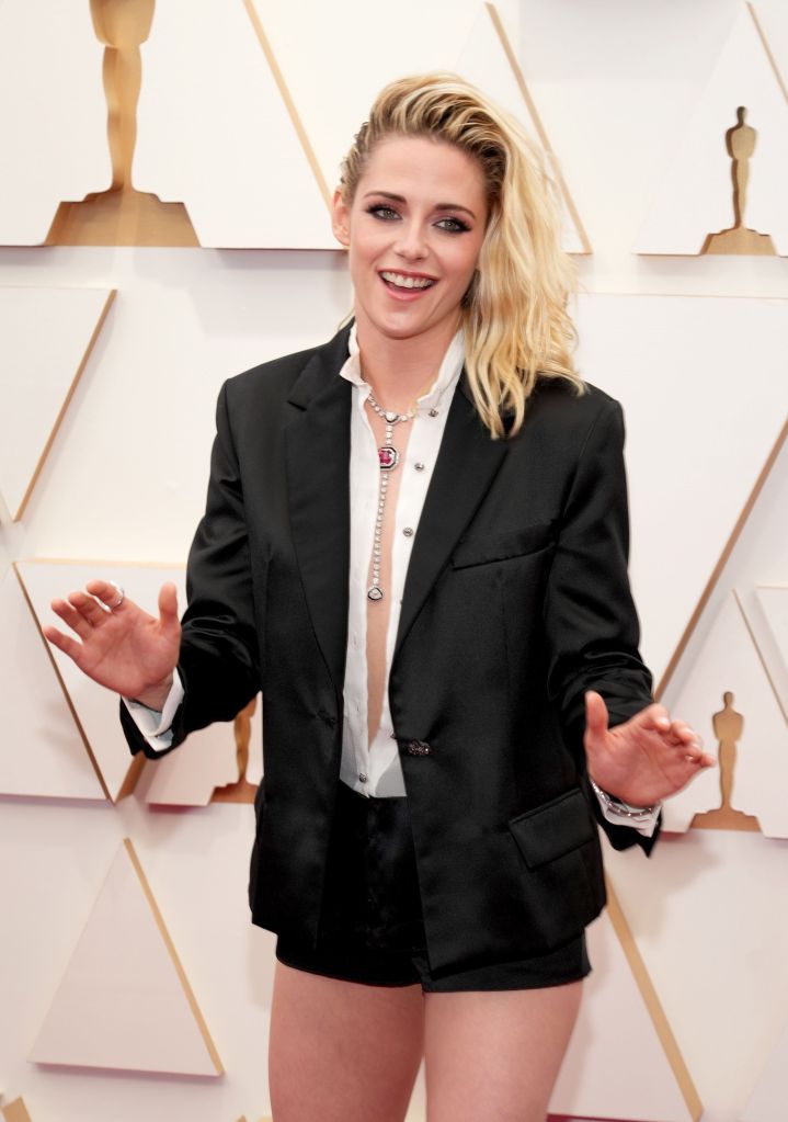 Kristen Stewart 在奧斯卡紅毯上選擇以帥氣性感十足的短褲裝亮相(未婚妻當然愛相隨啦)!