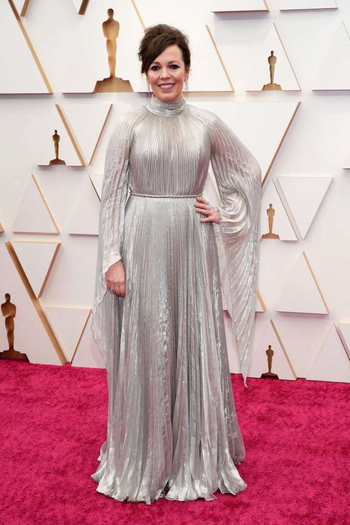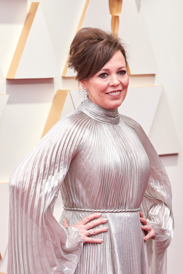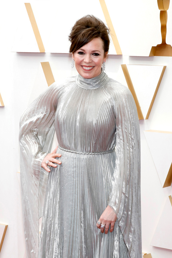 Olivia Colman的奧斯卡頒獎典禮的紅毯戰袍來自 Dior 的特別訂製款,看起來是融合了2021秋冬高訂不同套的設計。